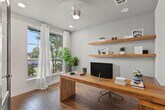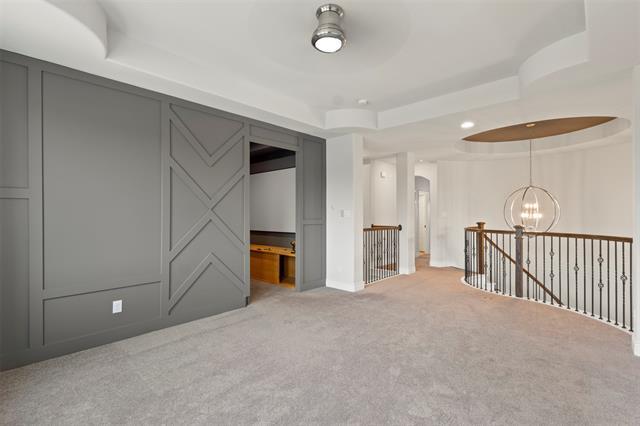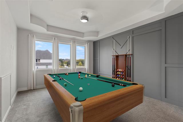 Experience exceptional living in this stunning home situated on a desirable corner lot right across from the community amenity center. Located in the heart of Frisco, you’ll enjoy quick access to major highways, top-rated schools, retail, dining, and entertainment. This thoughtfully designed home features 4 spacious bedrooms, including the primary suite and guest suite conveniently located on the first floor, plus 3 full bathrooms and walk-in closets in every bedroom. Upon entry, the grand foyer welcomes you with soaring ceilings and a dedicated office complete with built-in desk and shelving. The open-concept living room showcases a stone fireplace, large windows filling the home with natural light, and a surround sound system. The gourmet kitchen is a showstopper, offering modern finishes throughout, including shiplap detailing at the breakfast bar, a kitchen island, luxury countertops and backsplash, gas cooktop, stainless steel appliances, and a beautiful view of the backyard pool. The primary suite is a true retreat with tall windows, a shiplap accent wall, and a spa-inspired bathroom featuring dual sinks, a garden tub, and a walk-in shower with dual shower head, including a rain shower. The custom-designed closet offers ample space, built-ins, and a mounted LED mirror, with direct access to the laundry room for ultimate convenience. Upstairs, enjoy a spacious game room, a hidden-door media room, and two additional bedrooms with access to a full bathroom. Step outside to your private backyard oasis, complete with a sparkling pool and spa, fully equipped outdoor kitchen featuring a brick oven, gas grill, sink, fridge, and ample counter space. The covered patio provides shade for year-round enjoyment, and there’s still plenty of green space for pets or kids to play. Residents also enjoy amazing community amenities, including front yard maintenance, a fitness center, resort-style pool, and multiple parks. This Frisco gem features your dream lifestyle!