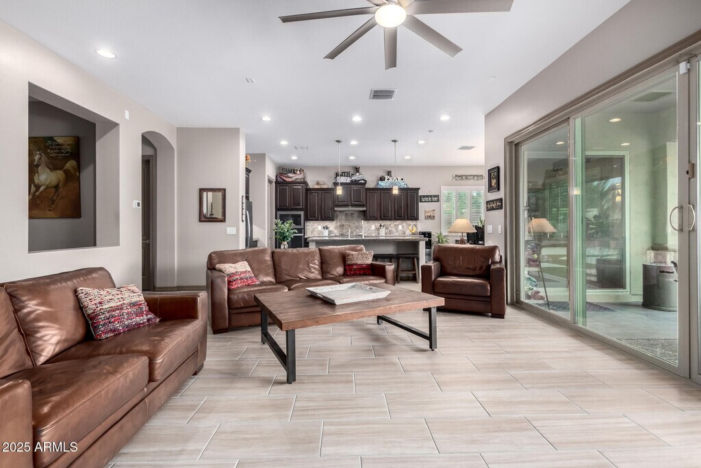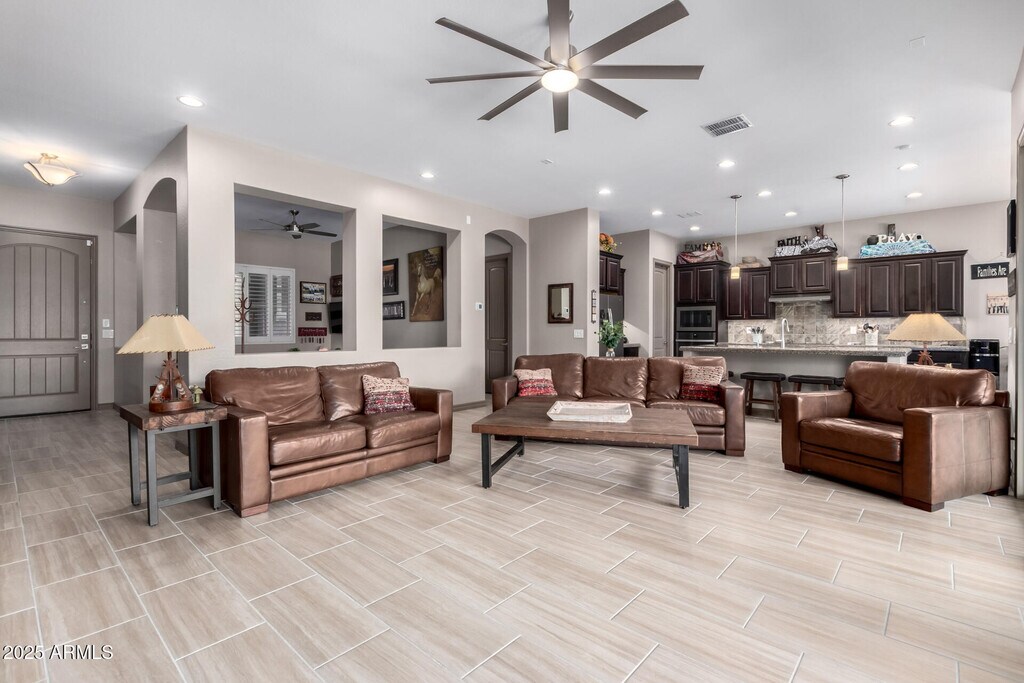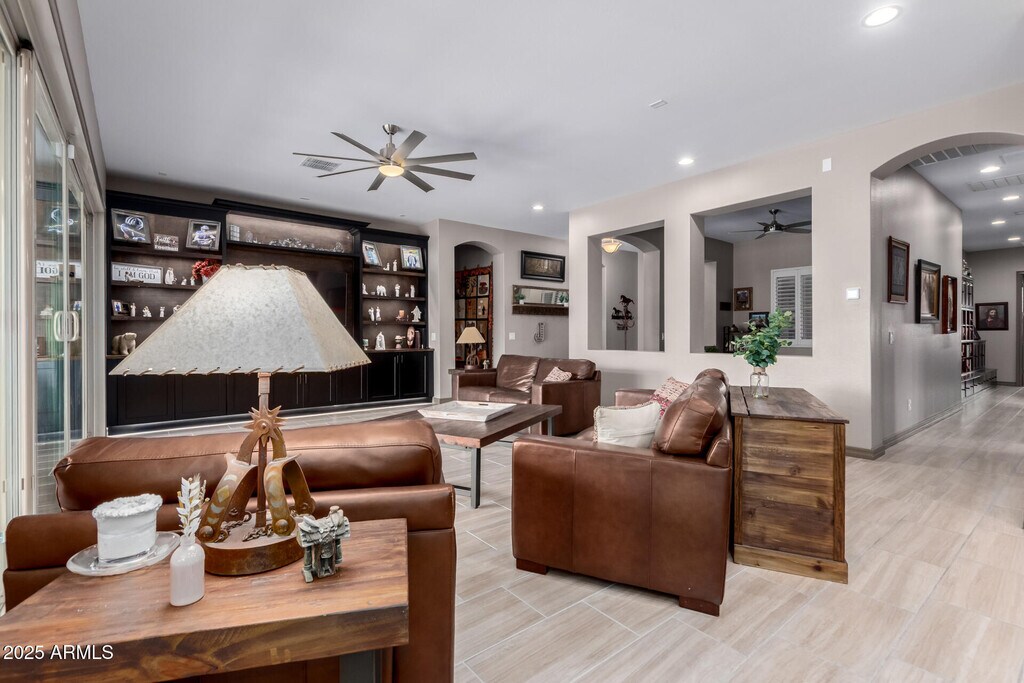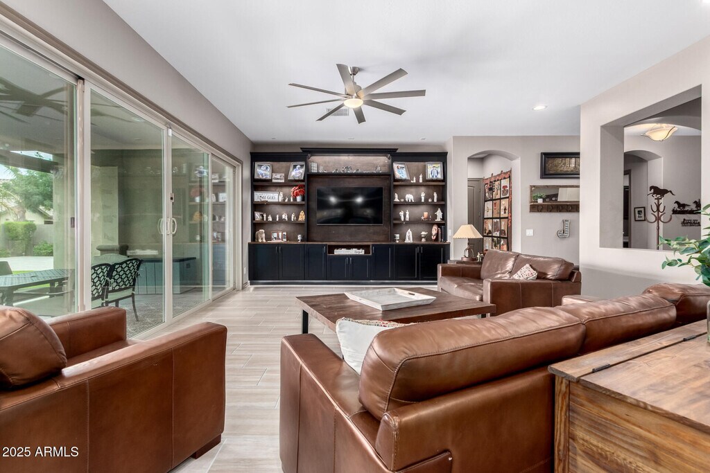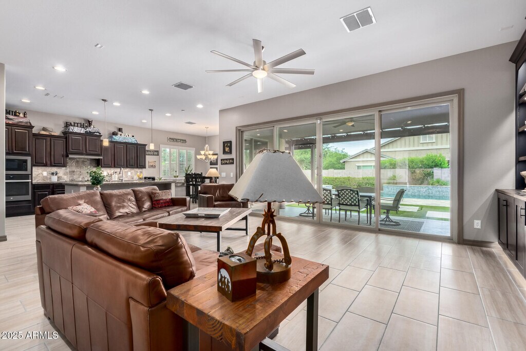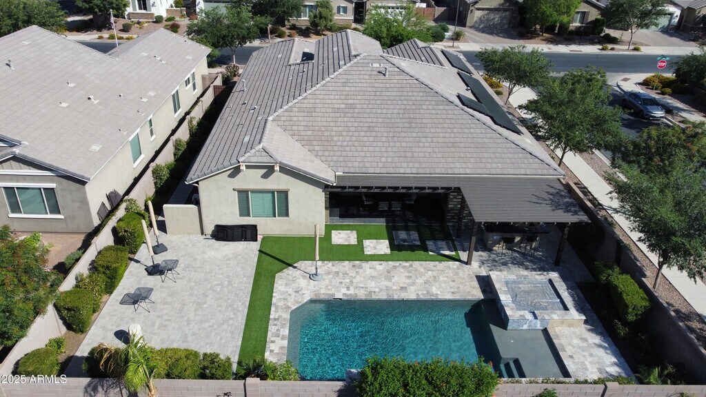 This beautifully appointed FURNISHED RENTAL home In Queen Creek Station offers an ideal location near shopping,top-rated schools,and the regional airport. The spacious layout includes 4 bedrooms,4 bathrooms,a private den,and a 3-car garage. The gourmet kitchen boasts granite countertops,a tiled backsplash,oversized island,walk-in pantry,dining nook,and stainless steel appliances. The luxurious primary suite features a spa-inspired bathroom with dual showerheads,while guest rooms are generously sized,including one with a private ensuite. Step outside to a resort-style backyard with a sparkling pool and spa,built-in BBQ,and lush landscapingperfect for entertaining or unwinding.