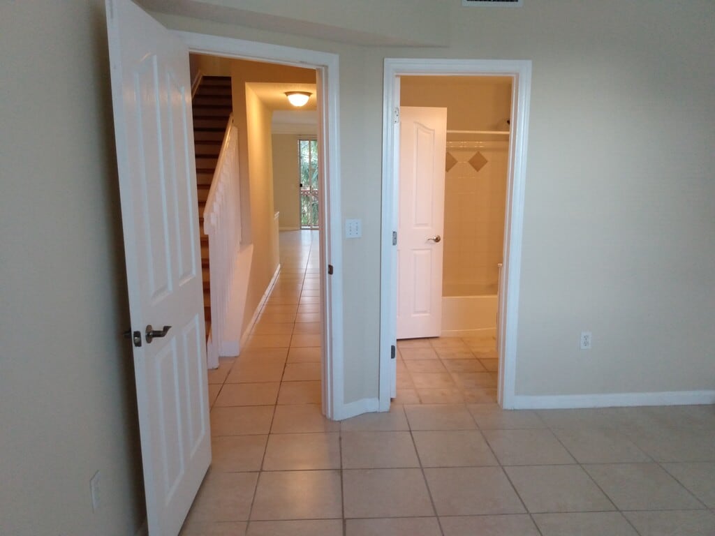 Beautiful 3 story upgraded and spacious 2 BR 2 BA townhome with 1 car garage in lovely Tierra Verde. Gated, all age community in East Delray Beach. Close to beaches, downtown Atlantic Avenue, I-95. shopping, dining, restaurants, Whole Foods, Trader Joe's, LA fitness, Planet Fitness, Fresh Market, etc. Bamboo wood stairs, tile flooring, in unit laundry area, spacious closets and balcony off living room area. At entrance to unit, there are stairs to 2nd floor containing kitchen, great area/living room, outside patio-balcony, full bathroom, bedroom and spacious closet. There are 2 flights of stairs in this unit. From 2nd floor, there are stairs leading to 3rd floor containing 2nd bedroom, large full bathroom, spacious closet and washer-dryer room. Community is gated and features fitness center, clubhouse, business office and business center, tennis, basketball, carwash and a lovely upgraded pool area. GREAT East of I95 location near intercoastal, beaches, shopping, Whole Foods market, LA Fitness, Planet Fitness, Target, Marshalls, Home Depot, Trader Joes, and downtown Atlantic Avenue. Unit has been meticulously maintained and serviced. No smoking nor vaping allowed inside unit. All information deemed accurate but not guaranteed. Available April 2026 for a 7 to 12 month lease term. Also available for sale-purchase at $410,000