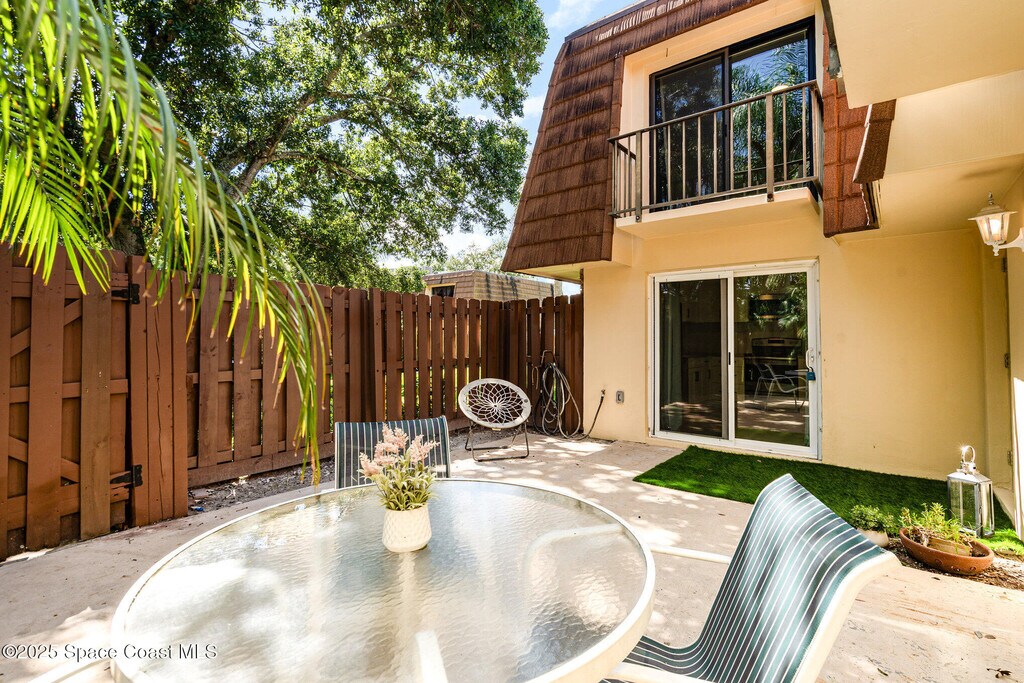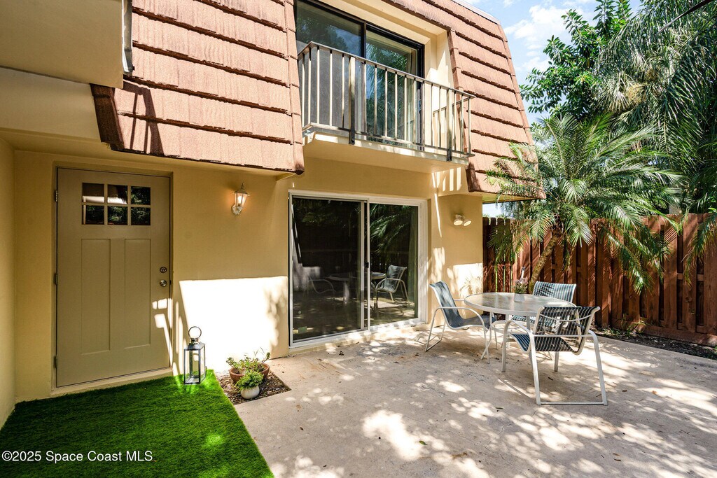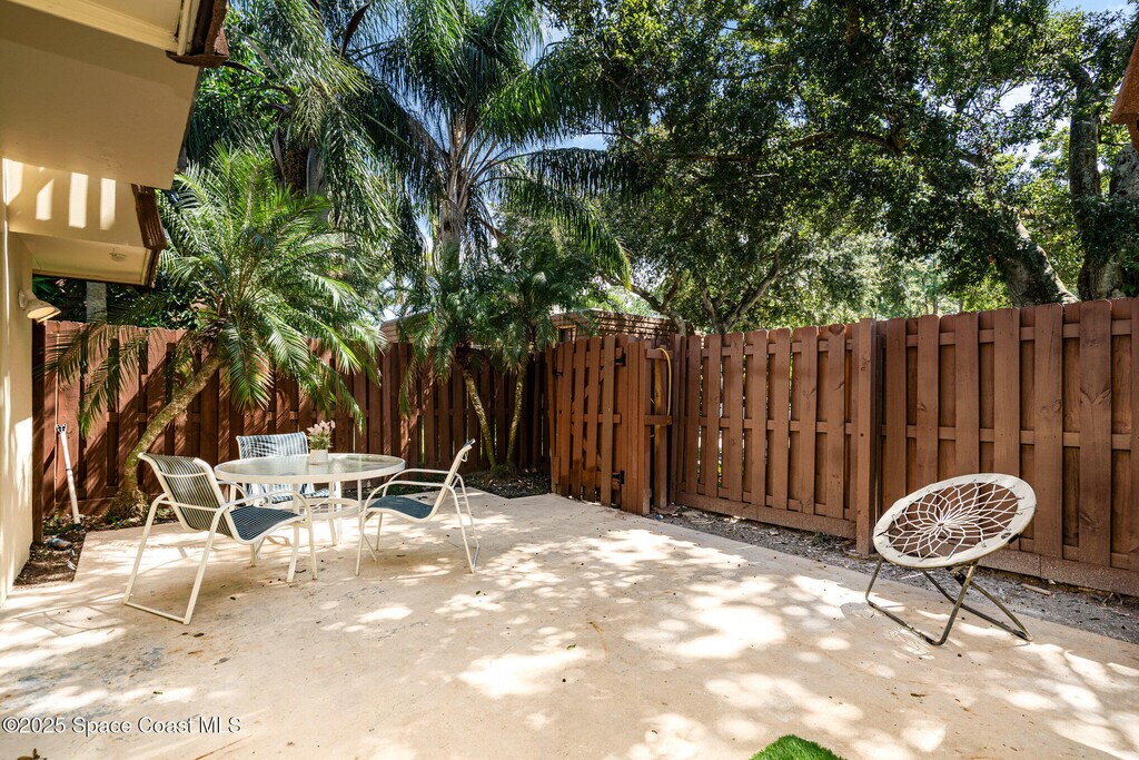 Private End-Unit Townhouse in Quiet Vista Oak West This beautifully remodeled townhouse offers a serene and private living experience in the desirable Vista Oak West community. As an end unit,it provides added privacy and tranquility. Key Features: Fully remodeled with brand-new flooring throughout Modern kitchen featuring new countertops and appliances Newly updated bathrooms for a fresh and contemporary feel All sliders replaced for enhanced durability and aesthetics Freshly painted interior for a clean,inviting atmosphere New air conditioning system and new roof for peace of mind Two spacious bedrooms,each with a private balcony overlooking lush,tropical,and shaded surroundings Open-concept layout with a large sitting area adjacent to the kitchen,perfect for entertaining Fully fenced courtyard with a wooden fence,ideal for barbecues and outdoor dining. Located near Melbourne's shopping centers,Harris Corporation,and just a 15-minute to ocean .ONE pet ok .