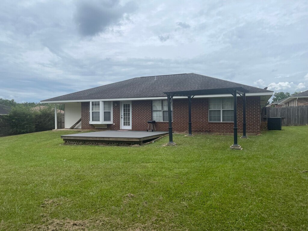 Step inside this brick home and you’re greeted by a spacious family room that sets the tone—tray ceilings overhead, wood-style flooring underfoot, and plenty of room to spread out or gather in. A convenient pass-through window connects the space to the kitchen. The kitchen features tile flooring and comes equipped with a stove/oven, dishwasher, and refrigerator. There’s a cozy breakfast nook that works just as well for morning coffee as it does for everyday meals, while a formal dining area offers flexibility. All three bedrooms are carpeted for comfort and filled with natural light from large windows. Generous closets and ceiling fans in every room add everyday ease. The primary bedroom includes a private bath with a jetted tub, separate shower, and an oversized vanity with dual sinks. Two additional bedrooms share a roomy bathroom with a tub/shower combo and extra counter space. Dedicated laundry room and two car garage adds convenience. Out back, the large fenced yard offers privacy and room to enjoy the outdoors, complete with a deck that’s ready for relaxing or entertaining. Sitting on a spacious lot in the sought-after Green Acre neighborhood, this home is in the DeRidder school district and just an easy 25-minute drive to Fort Polk—bringing comfort, space, and convenience together in one place.