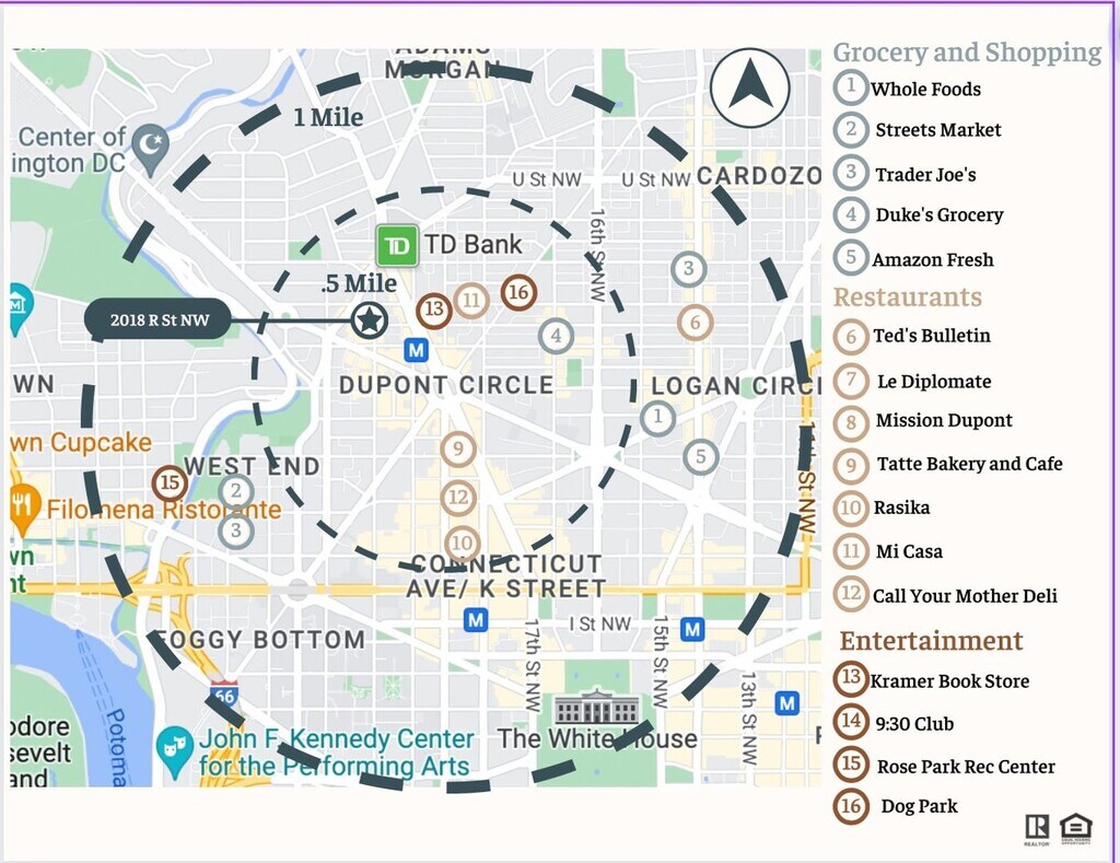 2018 R St NW has 5 shopping centers within 1.9 miles.
