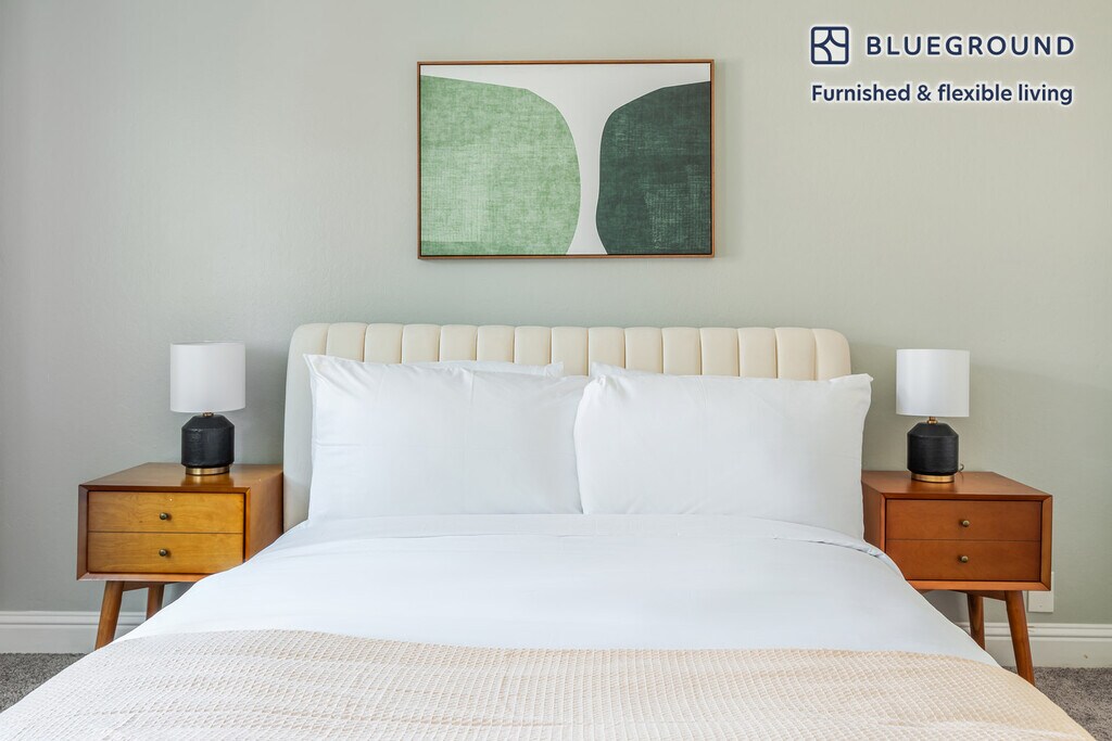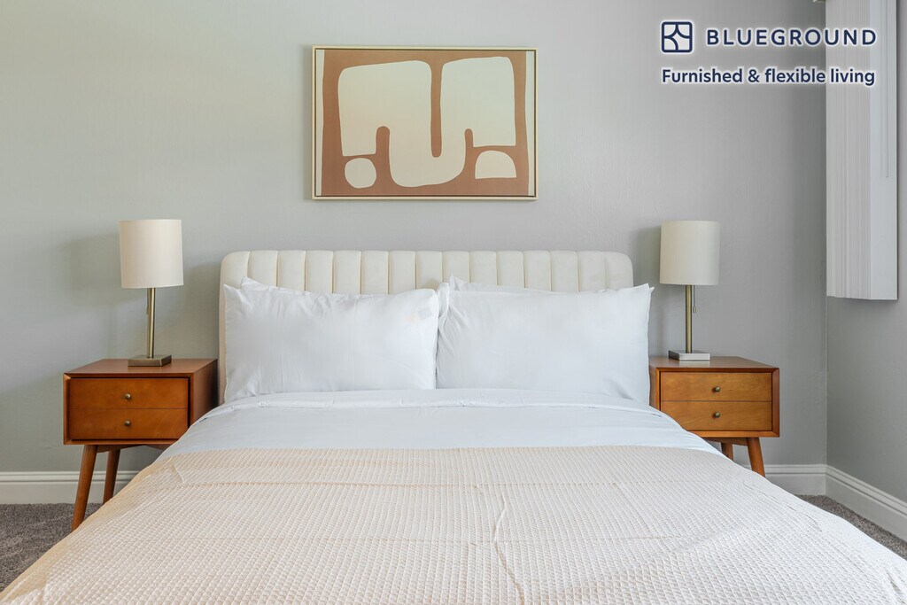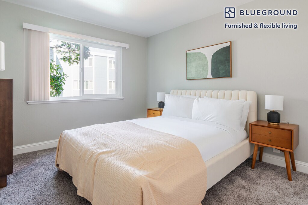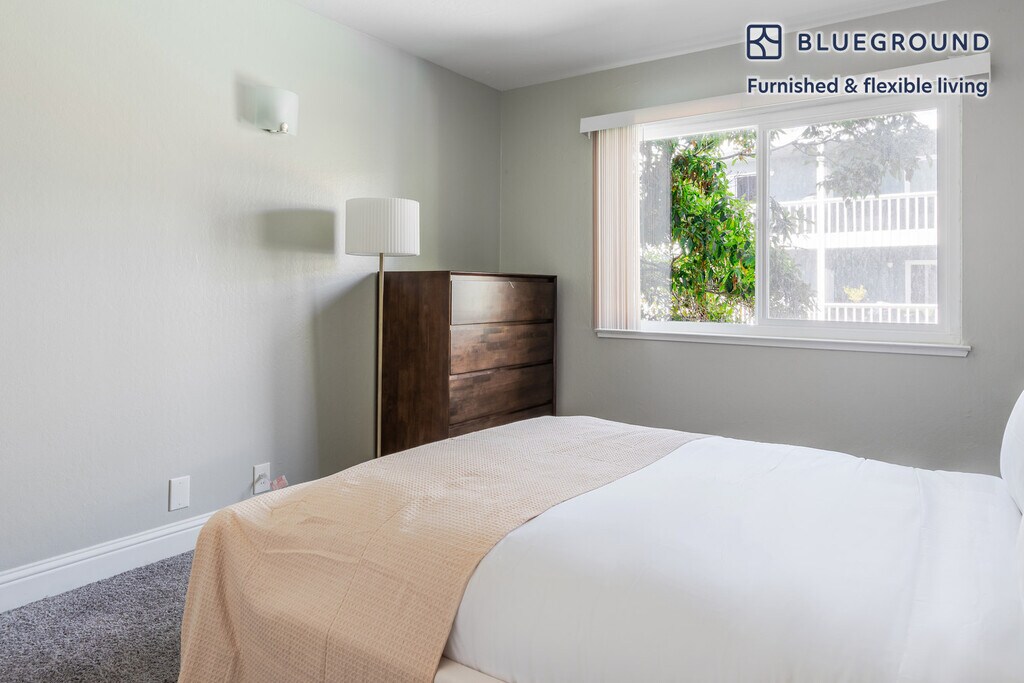 Show up and start living from day one in Alameda with this pretty two bedroom Blueground apartment. You’ll love coming home to this thoughtfully furnished, beautifully designed, and fully equipped Alameda home. (ID #SFO1958) The advertised rate of $2,350/month is the lowest available price, based on a 1 month(s) and 3 day(s) stay with a move-in date of December 23, 2025. If you’re looking for a 1-year stay, the rate is $3,970/month. Rates vary depending on the duration of stay, season, and other parameters. For exact pricing and additional pricing components, please visit our website and enter your desired move-in and move-out dates. The rate is applicable when billed upfront; it can be higher if billed in multiple payments. Brokers are welcome to reach out. Were you looking for an unfurnished lease? Try Blueground instead and upgrade from unfurnished to furnished living: - Furnished at rates comparable to unfurnished - No setup or furniture costs - save thousands - Move-in ready - save time, just bring your suitcase Designed with you in mind Gorgeous furniture, fully equipped kitchen, smart TV, and a premium wireless speaker are just a few of the amenities you’ll find inside this two bedroom apartment. Ideally located in Alameda, you’ll find a lot to love outside as well. When you’re ready to relax, you’ll be happy to discover every Blueground bedroom comes with superior quality mattresses, luxury linens, and cozy towels. We handle everything so you can simply show up and start living. Sleeping arrangements Queen Bed, 63in/160cm Queen Bed, 63in/160cm Amenities Building amenities unique to this two bedroom apartment include an on-site: - BBQ Area - Elevator - Swimming pool - Parking - Pets allowed Arrival and ongoing support The entire apartment is yours to enjoy! Throughout your stay, you’ll have access to our Client Experience team through the Blueground App. You can schedule additional cleanings, submit maintenance requests, and view our neighborhood recommendations with just a few taps. We’ll share all details upon confirmation of your stay. Other things to note Building amenities may have an extra cost. This Blueground apartment has flexible lease options, allowing you to book it for one month, a year, or more. Pets are welcome, though weight limits and breed restrictions apply and may incur fees. Parking is offered based on availability and is subject to a fee. We take great pride in ensuring every photo displayed is shot in our own units with our actual furnishings. That said, we regularly refresh our decor and furniture arrangement, which may differ from what’s pictured. [SI]