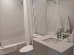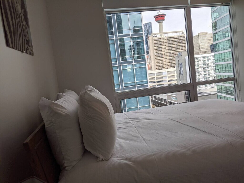 Experience the best of Calgary in this chic and modern apartment, perfect for business travelers, family vacations, or romantic getaways. This generous 2-bedroom apartment features plush queen beds, a sleek kitchen equipped with premium appliances, and in-unit laundry for your convenience. Enjoy the private balcony boasting stunning skyline views in an energy-efficient building with access to a cutting-edge fitness center. Located just minutes away from shops, parks, and top restaurants, you'll feel at home in this vibrant city. Enter a bright, open-concept living area where modern design blends seamlessly with comfort. The tastefully furnished living room provides a cozy haven with breathtaking skyline views and direct access to a private balcony. Unleash your culinary skills in the stylish, contemporary kitchen with ample counter space, abundant cabinetry, and high-end appliances, making cooking enjoyable and stylish. The apartment features two elegantly designed bedrooms with queen beds and spa-like bathrooms with sleek vanities and either a luxurious bathtub or a stand-alone shower. Benefit from the convenience of indoor parking for a fee, with reservations necessary to secure a spot. Enhance your experience with our IPTV Box, which includes over 300 channels available upon request for a nominal fee. We also welcome your pets for an additional charge, with certain restrictions in place to maintain a pleasant environment for all guests. Step out of your apartment and immerse yourself in the vibrant energy of Calgary. Just a short stroll away, you'll find iconic landmarks like the Stampede Grounds, the lively BMO Centre, and the Victoria Park C-Train Station, providing quick and easy access to the city. Explore the vibrant shops, pubs, and breweries along 17th Avenue and downtown Calgary for the best entertainment, dining, and cultural experiences the city has to offer. Smoking is not allowed indoors to maintain a clean, healthy environment for everyone. Guests will have full access to the entire apartment with complete privacy. Enjoy easy elevator access throughout the building and 24/7 guest support. A notice to vacate must be sent in writing 30 nights before the departure date for stays over 30 nights, or a charge of 30 nights will apply. Ideal for business travelers, this apartment blends convenience with luxury. High-speed Wi-Fi and a serene atmosphere make it easy to work efficiently and unwind comfortably. [SI]