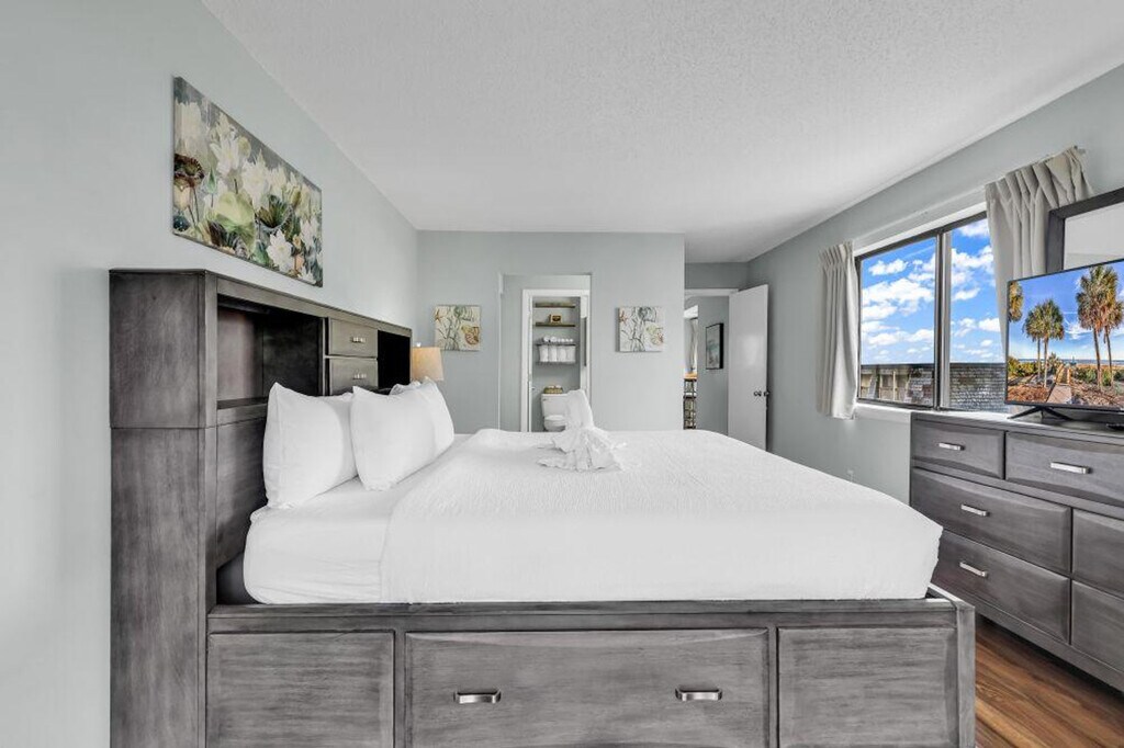 Feel at home in this beautifully designed ocean-side condo featuring 2 spacious bedrooms and 3 full bathrooms, perfect for families, couples, or groups traveling together. Each bedroom is thoughtfully separated for added privacy and includes its own private balcony, ideal for enjoying ocean breezes and peaceful coastal views. This condo features an updated kitchen, stylish furnishings, and a dining area. The open living area provides a welcoming space to relax after a day at the beach, and the well-equipped kitchen makes meals easy and enjoyable. Amenities include air conditioning, a smart TV, and a private balcony. Parking is allowed under the building and surrounding areas within the building, with 2 parking spots available. Guests need to go to Ocean Dunes main building to use the laundry facility. An outdoor swimming pool is available. Located just steps from the beach and within easy walking distance to restaurants and beach bars, this property is also minutes from the best of Myrtle Beach, including dining, golf, shopping, and entertainment. This property is an ideal vacation home, offering partial ocean views from multiple rooms and a versatile lockout floor plan. Enjoy the soothing sound of ocean waves as your backdrop. Grilling is prohibited and any violation of this policy will incur a $200 fine. Bicycles, motorcycles, mopeds, and trailers are not allowed. House parties and illegal substances are strictly prohibited and grounds for immediate eviction. Leaving the unit later than the check-out time will incur a late check-out penalty starting from $500. Please allow pest control to complete services once a month, as violating this can cause fines. [SI]