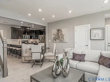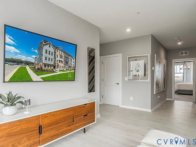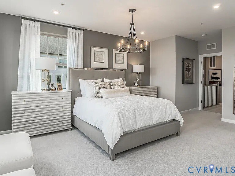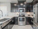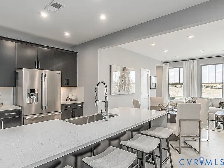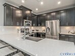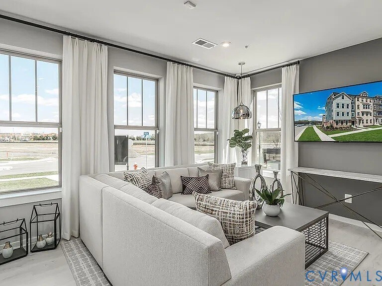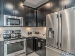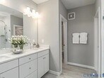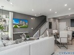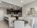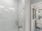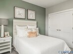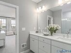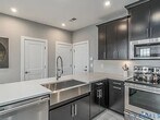 The open-concept design of The Tessa end unit model home allows for ease of living and entertaining from the kitchen to the main family room whether that means a casual dinner on the couch or hosting happy hour with friends. The front of the condo has three large windows allowing for natural light to flood the space,making it feel even more spacious and open. The family room is large enough for a 5-8 person sectional and is connected to the dining space and kitchen. For a 2-bedroom condo,the kitchen is built to impress. The quartz countertop peninsula provides seating for 5 and plenty of space to lay out appetizers and snacks or to have quick meals while you're working from home. The oversized primary bedroom on the second floor is big enough to make you feel like you're in a single family home. It has an en-suite bathroom,double vanities,two walk-in closets,and a private water closet. There are also two other bedrooms and full bath that can be used for guests or a work from home space.