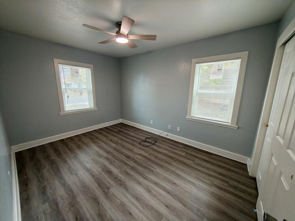 Freshly remodeled and ready for you to move in! Everything from new interior paint, new kitchen countertops, and gorgeous vinyl plank flooring throughout has been done here! Even brand-new insulation has been put in the attic!! With a unique floor plan offering 5 bedrooms and 2 bathrooms, an open main living space, and a fenced backyard, this home is sure to please. In addition, this home has central AC and heat for the home except the back 5th bedroom, which has a window unit that provides AC and heat. And did I mention all windows are also brand new?! Call for your tour of this gorgeous home, you'll be glad you did! SQUARE FOOTAGE APPROXIMATE; SECURITY DEPOSIT IS $1000; MAX OF 2 PETS, 25 POUNDS AND UNDER EACH WITH ADDITIONAL DEPOSIT