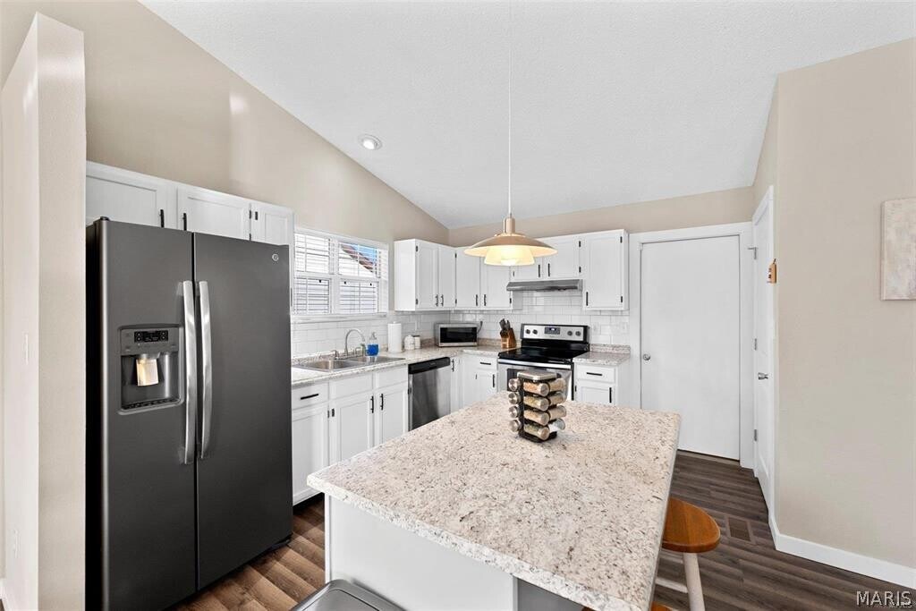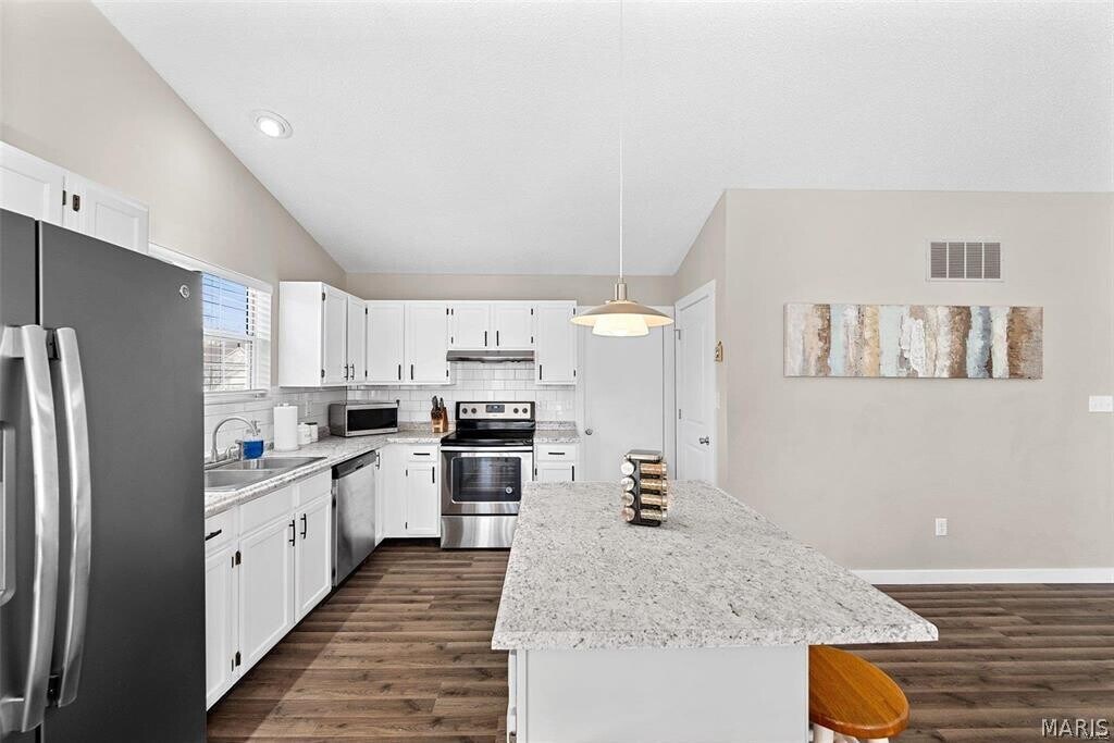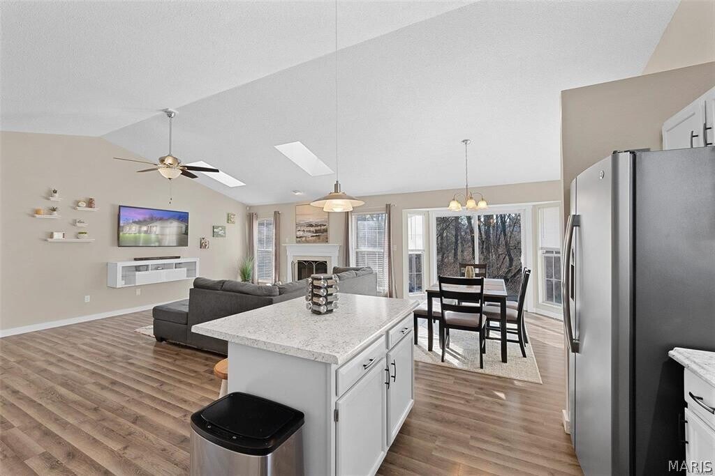Three Bedroom House in Brittany Estates Subdivision, Vaulted Ceiling and LVP Flooring Throughout Main Living Areas, 8 x 7 Foyer Entry Opens to 20 x 14 Family Room with Skylights and Wood Burning Fireplace, 13 x 12 Kitchen Features Stainless Steel Appliances and Center Island, Glass Top Electric Range, Dishwasher, Garbage Disposal and Refrigerator, 13 x 11 Adjacent Dining Area with Back Yard Access, Full Hallway Bathroom, 15 x 14 Master Bedroom with Vaulted Ceiling and Walk In Closet, 10 x 8 Private Bathroom with Double Vanity Sinks, Walk In Shower and Separate Tub, 13 x 11 Second Bedroom, 11 x 10 Third Bedroom and Full Hallway Bathroom, Two Car Attached Garage, Fenced Back Yard with Wooded Lot, Available 04/01/2026.