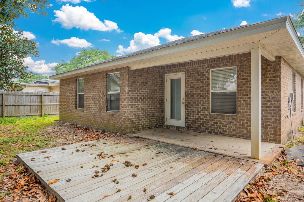 3-bedroom, 2-bath brick home with a two-car garage in a highly convenient location near Hurlburt field. The property features an open, spacious layout with durable tile flooring throughout the living spaces, new carpet in bedrooms. New appliances, granite kitchen countertops and pantry and modern neutral bathrooms. Indoor laundry adds everyday convenience, and the large, fully privacy-fenced backyard with extended patio offers plenty of room enjoy the space. A solid, well-kept home in a prime location with quick access to base entry gates. 3-bedroom, 2-bath brick home with a two-car garage in a highly convenient location near Hurlburt field. The property features an open, spacious layout with durable tile flooring throughout the living spaces, new carpet in bedrooms. New appliances, granite kitchen countertops and pantry and modern neutral bathrooms. Indoor laundry adds everyday convenience, and the large, fully privacy-fenced backyard with extended patio offers plenty of room enjoy the space. A solid, well-kept home in a prime location with quick access to base entry gates.