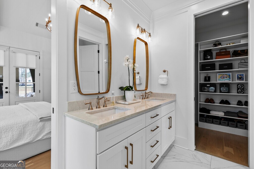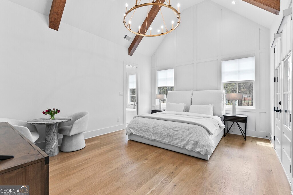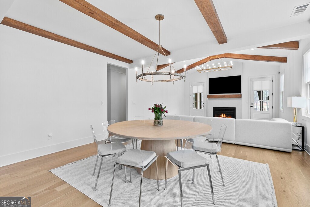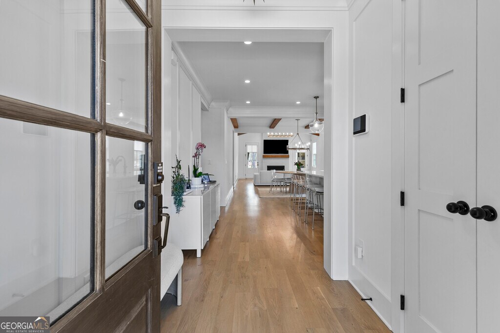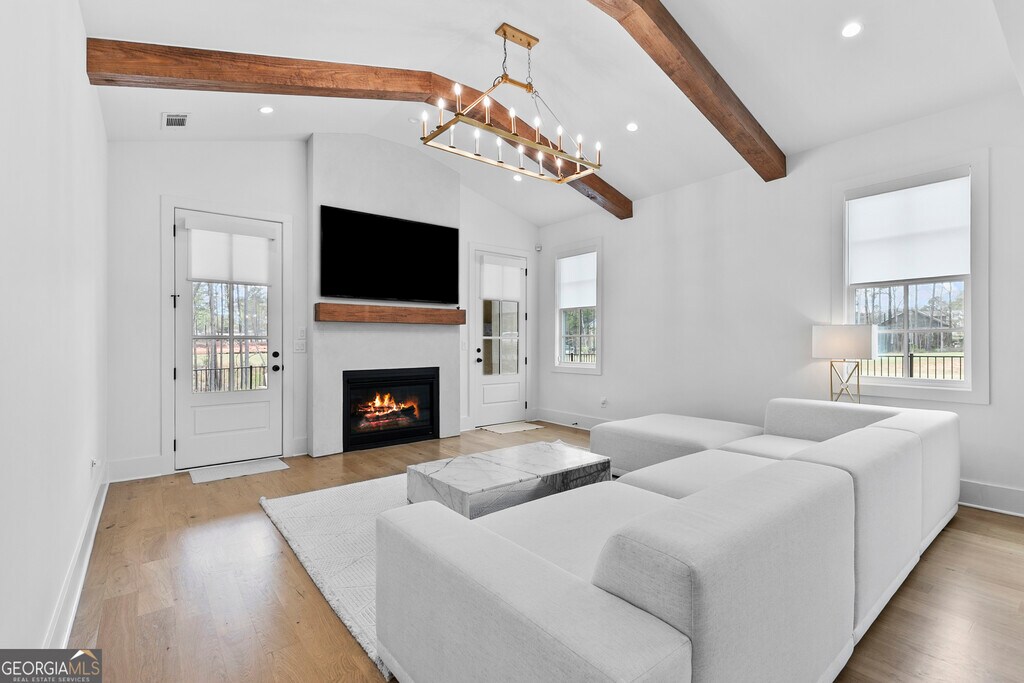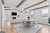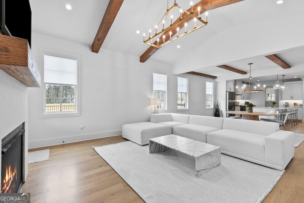 Walkable living meets refined design in one of Peachtree City's most convenient locations. Beautifully designed 5-bedroom, 3.5-bath home in Towson Village, one of Peachtree City's fastest-growing communities, zoned for the highly sought-after McIntosh school district. From the moment you step inside, wide plank white oak hardwood floors-carried throughout-set a warm, refined tone. The chef's kitchen features quartz countertops, custom cabinetry, top-of-the-line appliances, a walk-in pantry, and an oversized island with built-in storage, all complemented by brushed brass finishes that add a subtle, elevated touch. A spacious dining area framed by exposed wood beams flows seamlessly into the living room, where those architectural details continue overhead. Natural light fills the space, anchored by an oversized fireplace and mantle. Just beyond, a covered back patio with its own gas fireplace extends the living space outdoors, overlooking a fenced backyard on a corner lot-ideal for both relaxing and entertaining. The main-level primary suite offers a private retreat with vaulted ceilings, tree-line views, and a thoughtfully designed en-suite bath featuring a walk-in shower, freestanding soaking tub, and custom walk-in closet. Two additional bedrooms, a shared bath, laundry room, and a well-appointed half bath complete the main level. Upstairs includes two additional bedrooms, a full bath, and an expansive walk-in attic providing exceptional storage and flexibility. Additional features include spray foam insulation, tankless water heater, electric vehicle charging, and a spacious 2-car garage with a dedicated golf cart bay. Towson Village continues to grow with a new amenities center underway, including a pool and clubhouse. Ideally positioned within walking distance to Publix, Starbucks, restaurants, and everyday shopping, with direct access to Peachtree City's extensive golf cart path system. Just minutes from Trilith, offering a vibrant mix of dining, retail, and entertainment. A thoughtfully designed, move-in ready home that delivers elevated finishes, functional living, and a lifestyle centered around convenience and connection. MLS ID 10716427