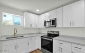 This beautiful 2 bedroom,1 bath has been fully renovated down to the studs with new trusses,framing,roofing,HVAC,water supply,sewer lines,windows,exterior/interior doors,exterior/interior paint,and R-38 insulation. The home features stainless steel appliances,white shaker cabinets,quartz counters,LVP flooring,LED recessed lights,and in a washer/dryer combos.