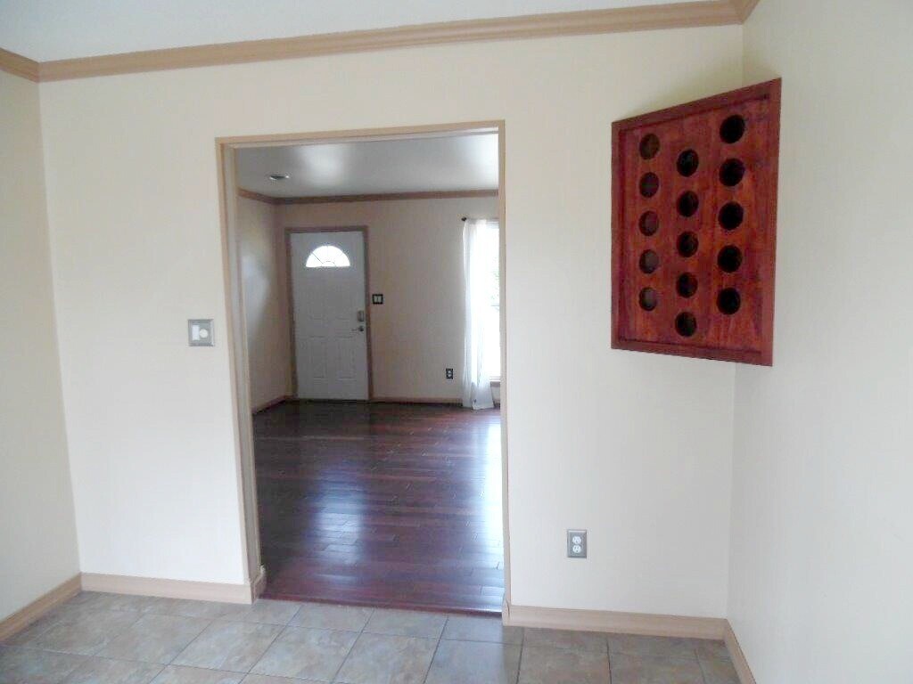 This 3BR, 1BA home within the Jacksonville City Limits! Once you enter the front door, you will be wowed by the gorgeous Brazilian cherry engineered hardwood floors flowing and crown molding throughout the entire home. Lovers of NO Carpet will love this house! Living room flows into eat-in kitchen area with its built-in corner wine cabinet and those doors that have the blinds in the glass so you always have clean, bright blinds. The kitchen has all the bells and whistles with ceramic tile flooring and granite counter tops and stainless steel appliance package of smooth top ceramic stove/oven, microwave above oven, dishwasher and side-by-side refrigerator with ice maker. A large laundry room is there too with shelves and storage cabinet for all your laundry and cleaning supplies. This home features a split bedroom floor plan with Master Bedroom on one side and bedrooms 2 and 3 on the other. Large Master Bedroom has large walk-in closet for all your stuff. The bathroom has newer pedestal sink, glass shelves, and a glass mosaic shower surround. Bedrooms 2 and 3 are good sized as well and are on the other side of home to ensure maximum privacy. Step out onto your large patio with special paving stones and enjoy the fire pit on your built-in bench or just soak in the sunshine or enjoy the large half acre lot and yard. Out back there is a wired shed with workbench for your enjoyment and use as well. Security system is in home for use at tenant's expense. No Smoking. No Virtual tours allowed. Pet friendly with pet screening and non-refundable charges applying. Application charges apply.