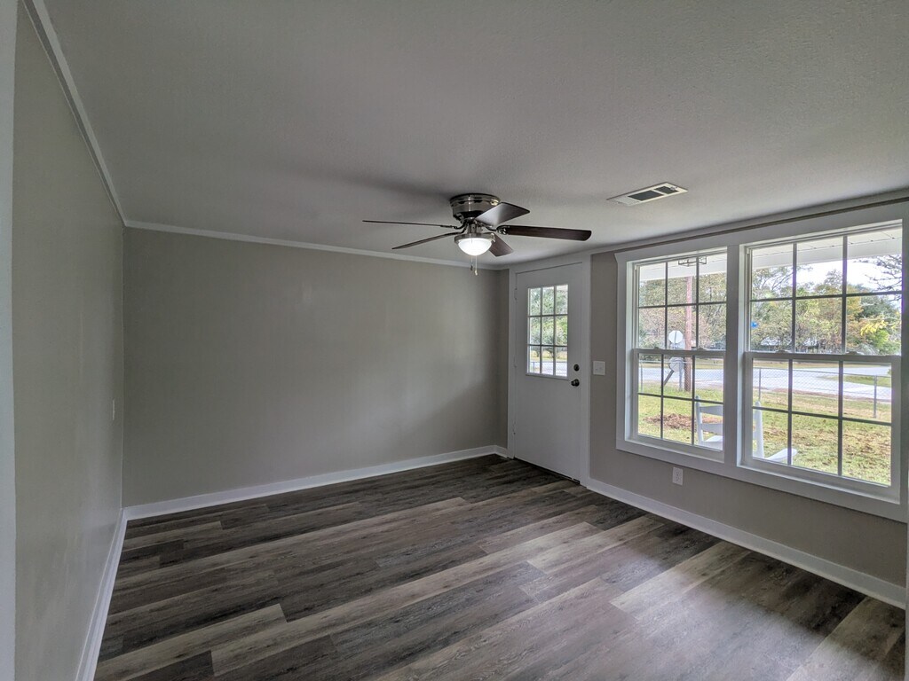 This completely renovated home sits on a large corner lot in Uvalda. The home consists of living room, eat-in kitchen, 2 bedrooms, office/sitting area off main bedroom with exterior door, 1 full bathroom and a large bonus room. Front porch and covered back patio and a completely fenced yard. Stove, vent hood and refrigerator included. Central heat/ac. This completely renovated home sits on a large corner lot in Uvalda. The home consists of living room, eat-in kitchen, 2 bedrooms, office/sitting area off main bedroom with exterior door, 1 full bathroom and a large bonus room. Front porch and covered back patio and a completely fenced yard. Stove, vent hood and refrigerator included. Central heat/ac.