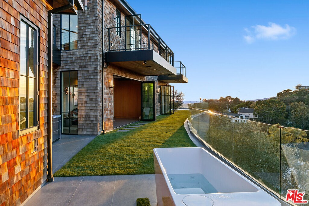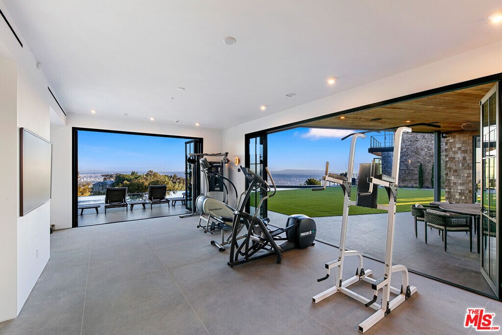 Welcome to The Apex. Perched above the city, this truly one of a kind estate is a statement of vision and refined luxury. Furnished and designed to impress at every turn, the approximately 7,500 square foot compound commands sweeping, unobstructed 360 degree views of the city lights, ocean horizon, and serene canyon vistas creating a constant connection to the landscape and a setting that feels cinematic, private and endlessly inspiring.The main residence features four bedrooms and five baths, where architecture and artistry converge. Custom finishes, museum quality lighting and a thoughtfully curated collection of designer furnishings create interiors that feel elevated, confident and effortlessly livable. Multiple fireplaces anchor the living and outdoor spaces, while expansive walls of glass dissolve the boundary between indoors and out. The living room seamlessly converts into an intimate cinematic experience with a concealed drop down theater, while an elegant yet sultry den opens directly to the outdoors, creating a natural flow for entertaining and everyday living. The primary suite with fireplace and balcony is a true sanctuary highlighted by an all-glass bathroom suite bathed in natural light. The shower is like a fine painting come to life, immersive and sculptural, surrounded by sky, horizon and shifting light. Each additional ensuite bedroom is generously proportioned, offering privacy, impeccable design and endless views.A separate guest house enhances the estate's versatility and appeal. Designed across two levels, each with its own kitchen and bath, it is currently configured as a gym and lounge, yet can easily serve as additional bedrooms. Ideal for extended guests, multigenerational living, staff accommodations or private entertaining, it maintains complete independence from the main residence.The outdoor experience rivals that of a world class resort, including waterfall entry leading to a rare flat grassy yard, an exceptional find in the hills, especially when paired with panoramic views and privacy. Beyond the lawn, the property unfolds into multiple outdoor living environments including a striking pool and spa, cold plunge, outdoor fireplace, fire pit, BBQ area, wraparound balconies and sexy roof top lounge with fireplace. Every space is designed to capture the scenery as it transitions beautifully from sunrise to glowing city lights at night. A private gated driveway with parking for up to 10 vehicles and garage with elevator to main level further underscores the rarity of this offering. Finding a hillside estate with this level of flat usable land, parking and unobstructed views is extraordinarily uncommon. This is not simply a home, but an architectural experience designed for a discerning luxury clientele seeking something iconic, bold and impossible to replicate. MLS# 26639261
