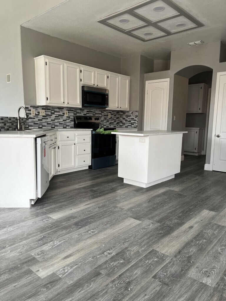 This 4 bedroom 2 bath just over 2000 sq. ft home !! Formal Living and Dining room, Separate Family room w/ Double sided Fireplace, New Laminate Flooring Throughout, Open Kitchen w/electric Range, Dishwasher, Microwave, Pantry Cabinets, Fenced Backyard, 3Car Garage, Large Storage Shed in backyard.