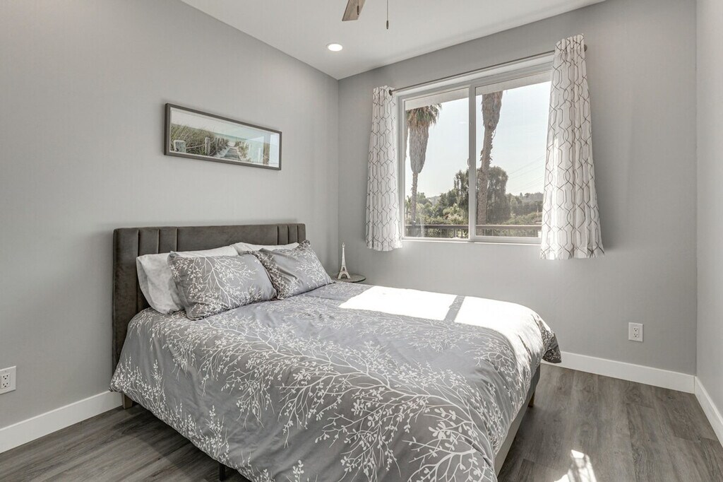 Feel at home in this stylish 2-bedroom, 2-bath apartment in Escondido. This single-story apartment is accessed via an exterior staircase. The apartment features modern decor, a smart TV with cable, bar seating, a high chair, a walk-in closet, and an en-suite bathroom with a walk-in shower. The kitchen is equipped with a refrigerator, stove/oven, microwave, dishwasher, drip coffee maker, toaster, blender, island, dishware and flatware, cooking and baking basics, and spices. Enjoy the convenience of central heating and A/C, ceiling fans, towels, linens, complimentary toiletries, a hair dryer, an iron and board, trash bags, and paper towels. Parking is available in the driveway for two vehicles. Centrally located, this apartment is close to shops and restaurants and 30 miles from downtown San Diego. Explore nearby attractions such as the California Center for the Arts and the Elfin Forest Reserve, or spend a day at the San Diego Zoo. The homeowner lives on-site in a separate unit and may be present during your stay. No smoking, pets, events, parties, or large gatherings are allowed. A photo ID may be required upon check-in. [SI]