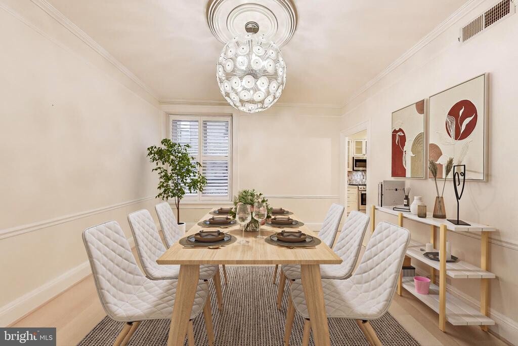 Welcome to a piece of history at 2022 Columbia Road NW, Unit 202, Washington, DC. This spacious 2105 sq ft home boasts 3 bedrooms and 2 baths, featuring a renovated kitchen and bath with stunning crown and decorative mouldings. Enjoy modern comforts like central AC, in-unit laundry, and a pre-wired sound system. With the charm of hardwood floors and high ceilings, plus amenities like a concierge, common roof deck, storage, professional gardens and off-street parking, this midrise gem offers both elegance and convenience.