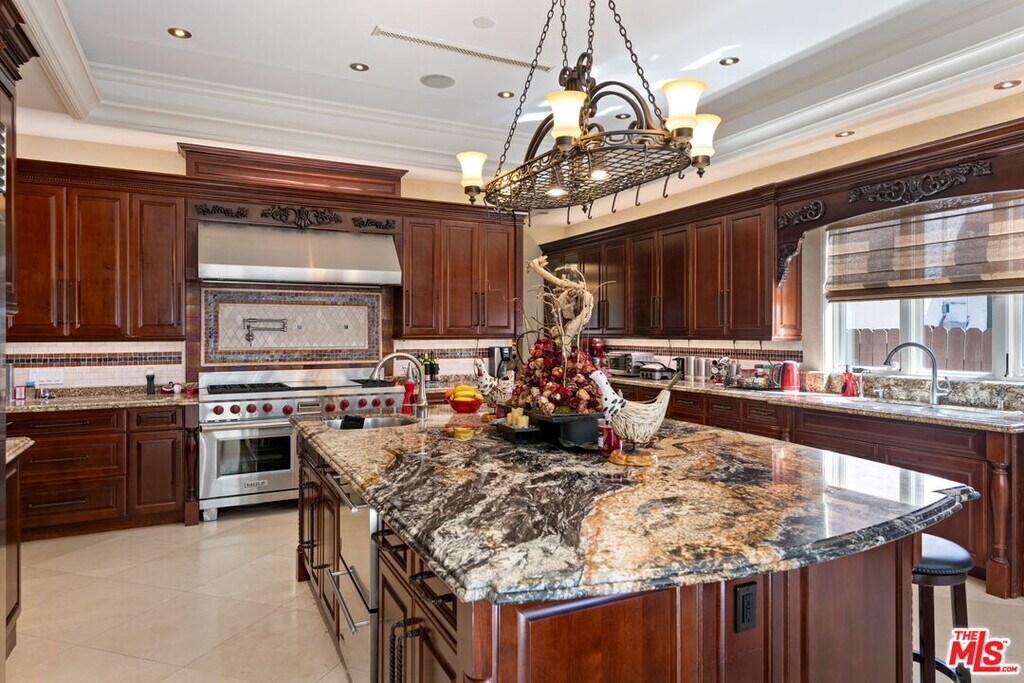 Furnished spacious 6,000+sf 6 bed/7.5 bath Mediterranean custom home with beautiful open floor plan. Prime mid-block location with gated front and auto-gated flag-stone finished driveway and walkway. Enter large living room opening to both dining room and back facing family room with fireplace and French doors to covered patio, tiled yard area and entertainer's outdoor covered kitchen with BBQ and bar area. Double sized chef's kitchen with center island, 2 sinks, all top-of-the-line stainless steel appliances including Wolf range/double oven, wine fridge, built-in oversized refrigerator/freezer, butler's pantry with warming drawer and microwave. Breakfast area overlooking backyard with patio access. stairway to 2nd story is filled with an abundance of natural light. 4 spacious bedrooms upstairs all with ensuite updated marble and tile-finished bathrooms, front facing bedrooms with balconies and Century City views. Primary suite with fireplace, french doors to balcony with treetop and sunset views and large custom closet complete with island of dresser built-ins. Primary bathroom with separate spa tub and steam shower, dual basins. Lower level of home with large open game room/den including projector tv and 2 additional bedrooms with ensuite bathrooms and powder room. Additional features include marble and hardwood flooring, Venetian plaster walls, wired sound, 4 zoned ac/heat, solar panels, alarm system, laundry room with storage on 2nd story level. Beautifully maintained. Prime location close to Westfield Century City Mall, UCLA and Westwood Village and Beverly Hills. Westwood Charter School. Available beginning MLS# 25606035