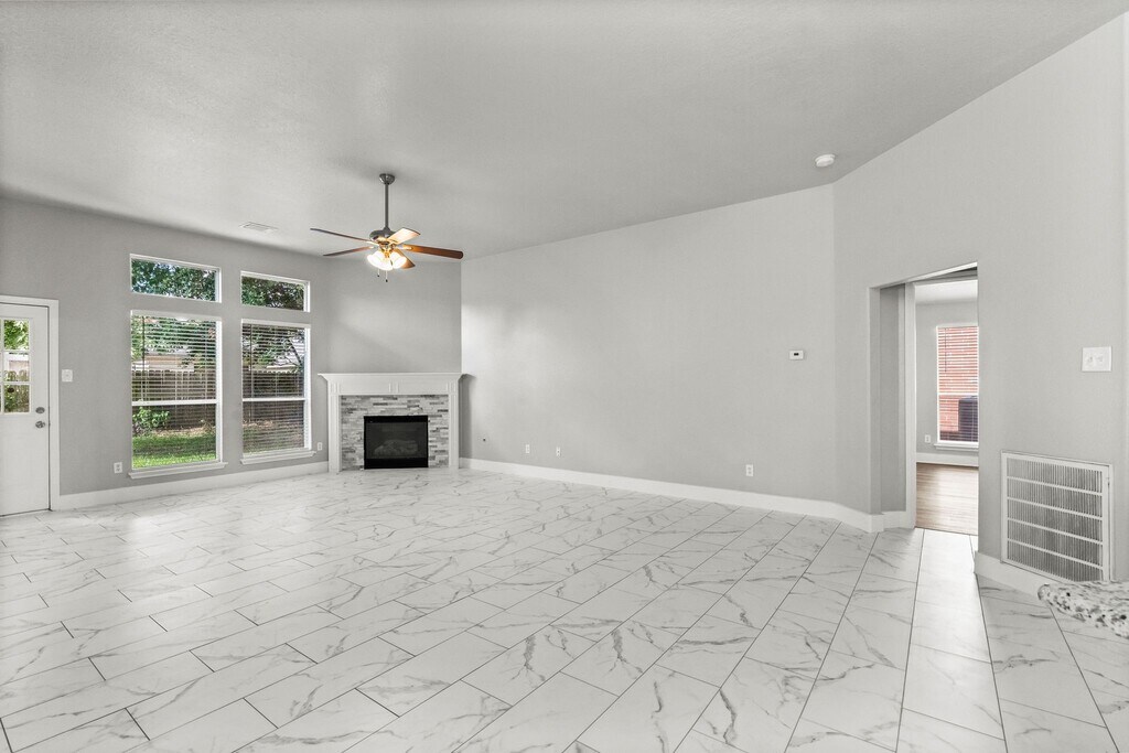 One-story home in the great neighborhood of Westfield Terra! This home has an open-concept floor plan with 3 spacious bedrooms,and 2 full bathrooms. The spacious kitchen has beautiful granite countertops & beautiful backsplash + plenty of cabinet space! Tall ceilings,updated light fixtures,beautiful tile & wood flooring,and a huge family room with a corner fireplace. Large backyard with a nice patio to grill and relax! MLS# 5012659