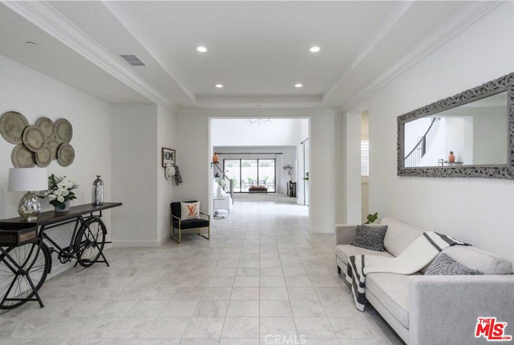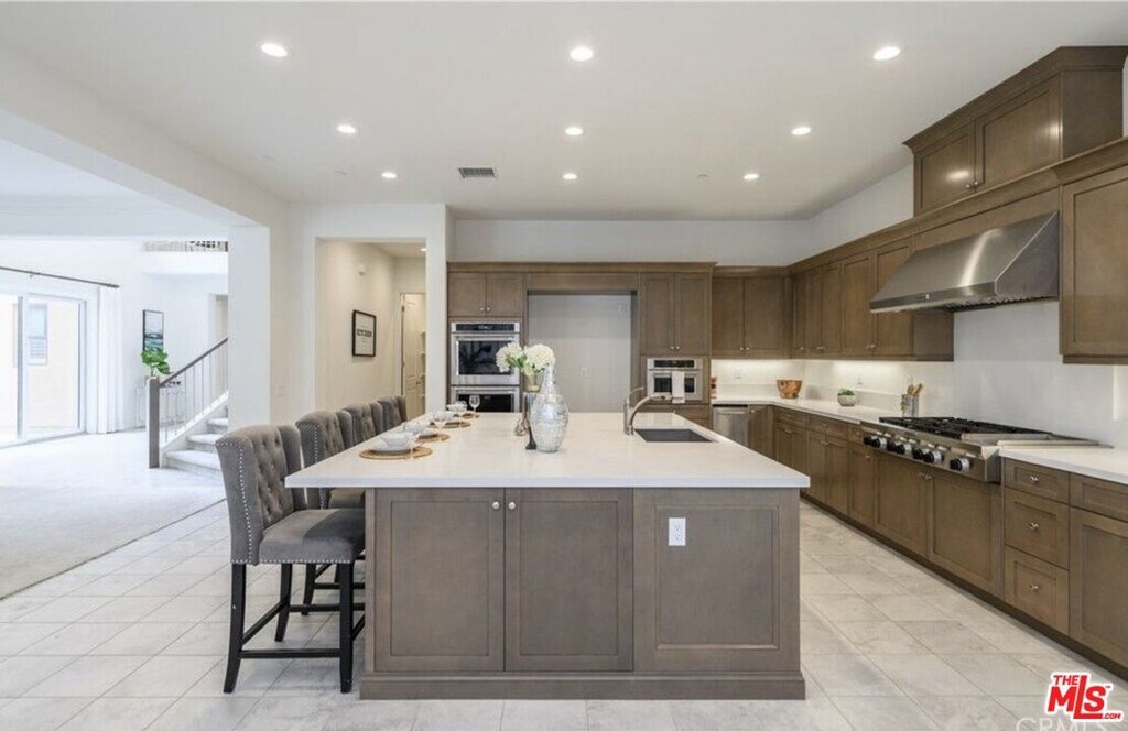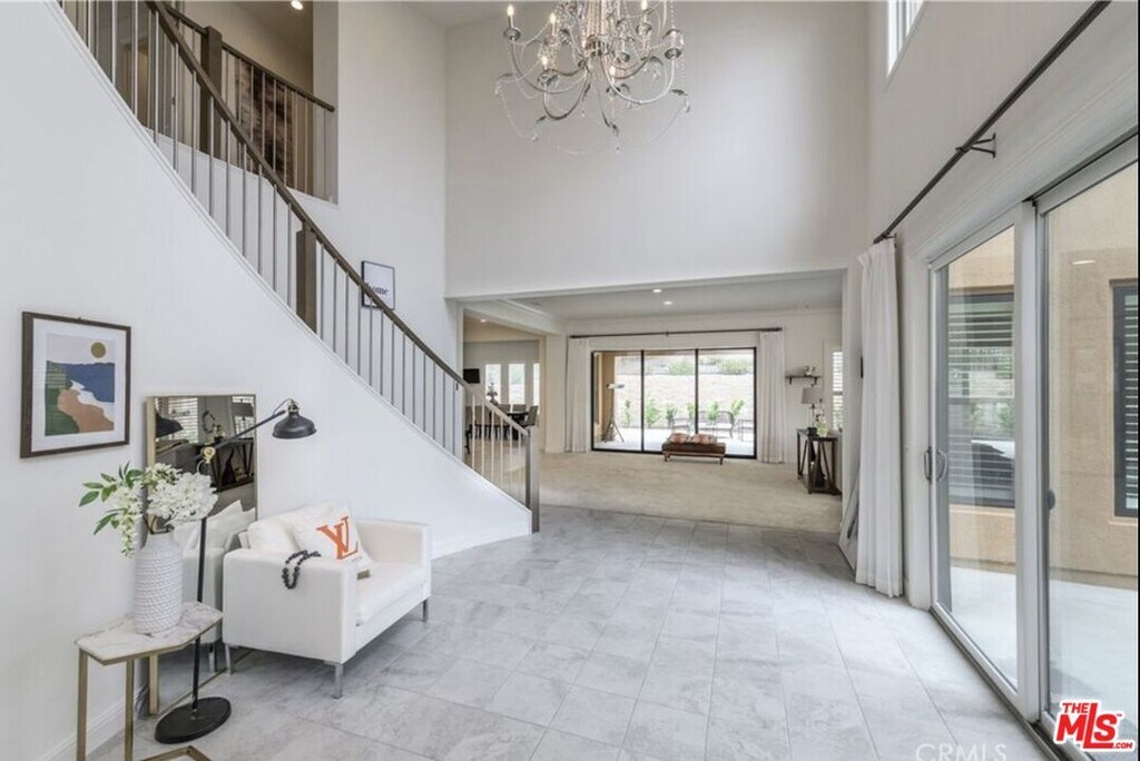 Experience the pinnacle of luxury living in the prestigious, guard-gated Westcliffe community of Porter Ranch, where this stunning Toll Brothers residence awaits. This elegant home sits on a desirable corner lot spanning 10,828 sq. ft., offering ample spaceperfect for adding a luxurious pool or creating your dream outdoor oasis. Boasting 5,513 sq. ft. of living space, this residence exudes sophistication and timeless style. The impressive layout features 5 bedrooms and 5.5 bathrooms, each with its own en-suite. A convenient main-level suite serves perfectly as a guest room, home office, or in-law retreat.The gourmet kitchen is a chef's dream, featuring a large center island, abundant counter space, and a spacious walk-in pantry. Designer-selected chandeliers bring warmth and elegance throughout the home, creating an inviting ambiance. A dramatic curved staircase leads to the upper-level living area and three additional en-suite bedrooms. The primary suite is a private sanctuary, complete with a cozy lounge area bathed in natural light from expansive windows, a custom walk-in closet with built-in shelving, and a spa-inspired bathroom with a soaking tub and an oversized walk-in shower with seating. Every detail of this remarkable home reflects the perfect blend of comfort, sophistication, and contemporary luxuryall set on a prime corner lot with exceptional potential for outdoor entertainment and relaxation. MLS# 25615605