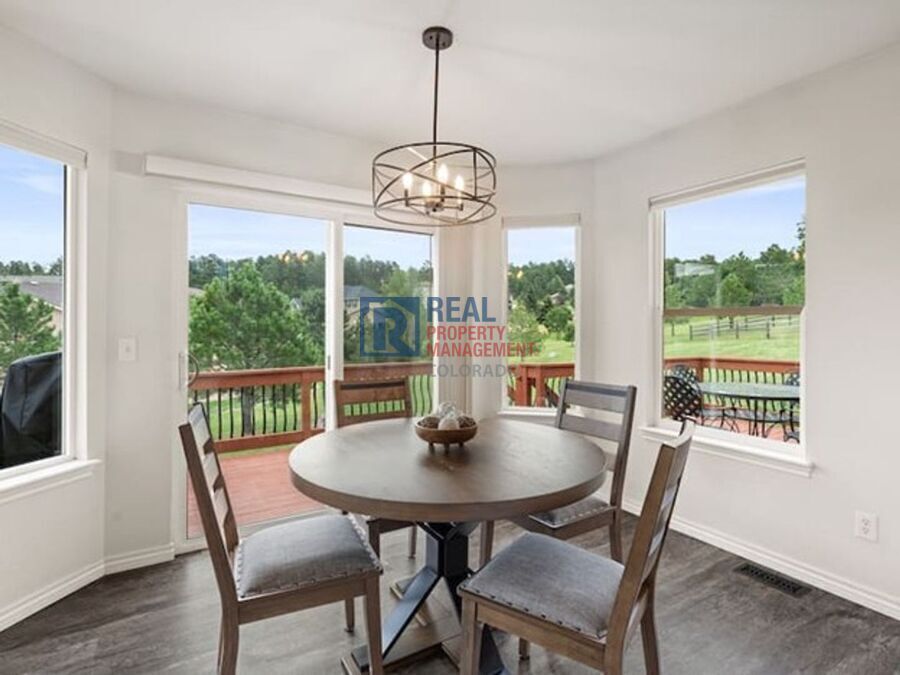 Enjoy stunning views of Bald Mountain, part of the Greenland Open Space from this beautifully maintained home. Set on a half-acre lot, the home features a bright living room with vaulted ceilings and a stone fireplace, a formal dining room, and an eat-in kitchen that opens to a large deck overlooking the spacious backyard. The private primary suite offers deck access, a luxurious bath, and a walk-in closet, while two additional bedrooms and a full bath complete the main level. The finished walkout basement includes a large family room with a wet bar and fireplace, plus two generously sized bedrooms and another full bath. Additional features include central air conditioning, a three-car garage with new doors, and a dog run. Conveniently located near the Santa Fe Trail, open spaces, District 38 schools, and just minutes from I-25(2 minutes), USAFA(10mintues), Monument shops, and restaurants, this home offers comfort, privacy, and ideal Colorado living. Below is a summary of all mandatory and optional charges associated with this property. Some totals are calculated based upon disclosed averages and may not be reflective of the final cost, which varies based upon usage, insurance premiums, etc. Please consult with your insurance agent, utility provider, etc., for additional information. Real Property Management Colorado cannot guarantee the accuracy of costs that vary, including renters’ insurance premiums, utility costs, and community or association fees charged outside of Real Property Management Colorado. MANDATORY CHARGES: -Rent: $3900 -Utilities: Variable. -Renter’s Insurance: Variable -Residence Set-Up and Lease-Term Support: $295 (One-time, non-refundable payment due 2nd month of the lease) -Application Fee**: $55/adult -Security Deposit***: $3900 -Building Move-In/Elevator Fees$0 -Parking Fees: $0 OPTIONAL CHARGES: -Payment Convenience Fee*: $76.05 (1.95% of the monthly rent) -Pet Rent: $35 or 1.5% of the rent amount. -Pet Deposit: $300 TOTAL MAXIMUM MONTHLY COST: $4,011.05 TOTAL MAXIMUM ONE-TIME COST: $4,550.00 *Real Property Management offers a method of payment that does not include the 1.95% Payment Convenience Fee. Contact our office for details. **Please see the details below regarding Portable Tenant Screening Reports *** Real Property Management Colorado is proud to offer deposit-free living to qualified renters through Obligo! We understand that moving costs can add up, so we want to extend financial flexibility to our residents. When you move in with us, you can skip paying a security deposit and keep the cash for activities you care about! Real Property Management Colorado Equal Opportunity Housing All leases subject to application, administration and processing fees. Prices and availability subject to change. Real Property Management Colorado, LLC cannot verify the accuracy of property information listed on third party sites. Please visit Real Property Management Colorado, LLCs website to confirm property information. The prospective tenant(s) have the right to provide to Real Property Management Colorado a portable tenant screening report, as defined in section 38-12-902 (2.5), Colorado revised statutes; and if the prospective tenant(s) provide Real Property Management Colorado with a portable tenant screening report, real property management Colorado is prohibited from charging the prospective tenant(s) a fee for real property management Colorado to access or use the portable tenant screening report. In order to qualify, prospective tenant's application must be considered complete and include the following documents at the time of submission: a completed application for everyone 18 and older, unexpired government issued photo-ids, proof of income, a signed brokerage disclosure, and a portable tenant screening report containing credit, rental history, and criminal background information within the last 30 days and showing the prospects' name, contact information, verification of employment and income, and last known address. Applicants who do not submit a completed application based on the above will be considered incomplete and will not be considered for the property. Attcahed Garage Basement Finished Carpet Flooring Cul De Sac Gas Fireplace Granite Countertops Kitchen Island Lot Level Lot Sloped Main Floor Bath Mountain Views N/A Skylights Utility/Laundry Room Vaulted Ceilings Vinyl/Laminate Flooring Walk In Closets Walk Out Basement Wet Bar