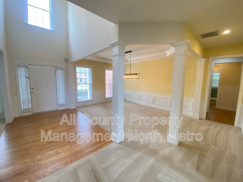 February Special: $500 Off One Months Rent & $0 Admin Fee for Leases Starting This Month This 2-story traditional brick single-family residence offers ample square feet of living space and sits on almost a quarter-acre cul-de-sac lot. The interior features four bedrooms and three-and-half bathrooms, with the main level containing a half bath and the upper level housing all bedrooms and three full baths. The oversized master suite includes a vaulted ceiling and a bathroom equipped with a double vanity, separate tub and shower, and a whirlpool tub. One additional upstairs bedroom has a private bath, while the remaining two share a hall bathroom. The main floor is designed with an open layout consisting of a separate living room, a dining room that seats over 12 people, and a large great room. The kitchen is outfitted with stone counters, a breakfast bar, an island, and a pantry, leading into a keeping room and family room. Washer and dryer included for your convenience. Flooring consists of hardwoods on the main level, with carpet and ceramic tile used elsewhere. Additional features include a two-car garage, zoned central air and heating, and a private backyard with a patio. Residents have access to the community pool. Sorry, no pets allowed. Locally & professionally managed by All County Property Management North Metro, which offers a streamlined leasing process with self-guided tours available.