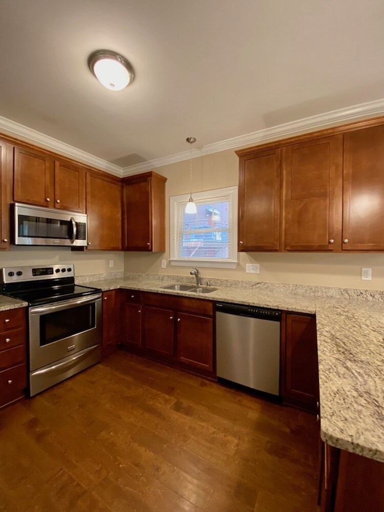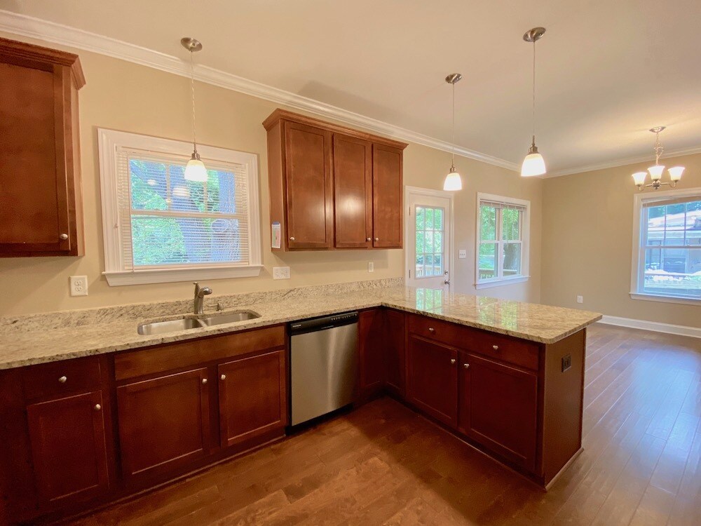 AVAILABLE JUNE 12, 2026! Spacious newer home in popular Lakewood neighborhood! 3 BR 2.5BA with a large, fully fenced back yard with shed. Walk to Lakewood Shopping Center District, Cocoa Cinnamon, and the YMCA. Quick commute to Duke and VA Hospitals, Duke and UNC campuses or downtown. Large living room at front of house. Eat-in kitchen features maple cabinets, granite countertops, stainless-steel appliances and leads out to deck overlooking fully furnished back yard with shed. Hardwood floors downstairs, carpet up. Primary suite features private bath with walk-in closet. 2 bedrooms share hall bath. Central heat and air. All appliances, including washer/dryer, provided. Owner provides lawn care. Tenants pay utilities and renter's insurance. Pet negotiable with additional deposit. No large dogs. Unfurnished. No smoking or vaping on the premises.