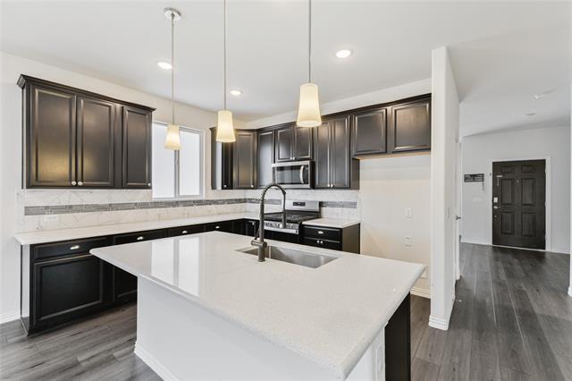 Beautiful 3-bedroom, 2-bath home located in the highly sought-after Anna Town Square community. Hardwood floors flow throughout the main living areas, with cozy carpeted bedrooms for added comfort. The kitchen features a gas range, center island, walk-in pantry, and opens seamlessly to the living and dining areas—perfect for entertaining. The spacious primary suite offers a thoughtfully designed walk-in closet, a deep soaking tub, and a separate shower. Enjoy the open floor plan and step outside to relax on the patio overlooking the generous backyard. Community amenities include a resort-style pool ideal for both play and relaxation, multiple jogging trails, and an elementary school conveniently located within walking or golf cart distance.