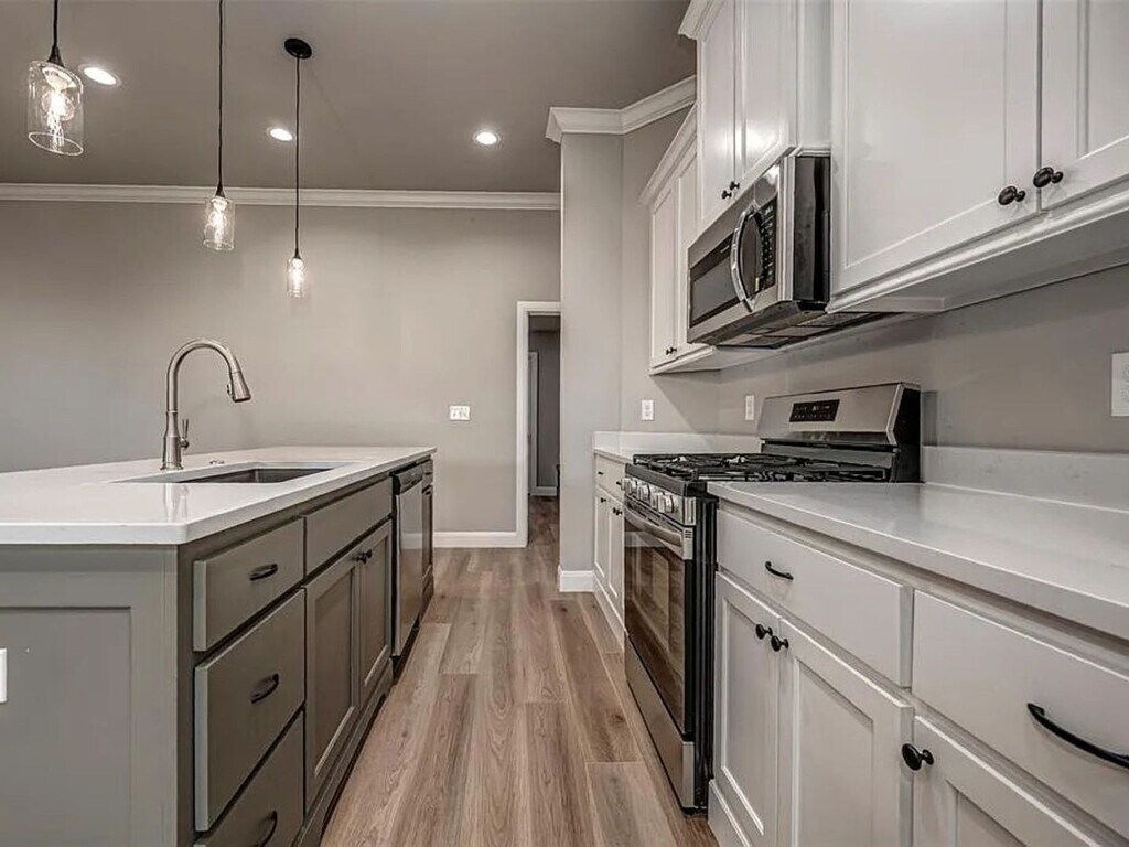 Property Address: 2024 W Crossbow Way Mustang, OK 73064 Live the lifestyle you deserve in this brand-new 4-bedroom, 2-bath home nestled in one of Mustang’s most desirable neighborhoods. Thoughtfully designed with a balanced layout and defined living spaces, this residence combines functional design with modern, high-end finishes throughout. The open-concept living area showcases beautiful wood-look tile flooring, an inviting gas log fireplace, and abundant natural light filtered through elegant two-inch faux wood blinds. The chef-inspired kitchen is the heart of the home, featuring quartz countertops, a center island with bar seating, a spacious pantry, and stainless steel appliances, including a built-in microwave, gas range, and dishwasher, perfect for everyday living and entertaining. The private primary suite offers a relaxing retreat with a walk-in closet, dual vanities, a soaking tub, and a separate tiled shower. Three additional bedrooms are generously sized, ideal for family, guests, or a home office. Bathrooms feature stylish floor-to-ceiling tile work and modern fixtures for a clean, contemporary feel. Additional amenities include a dedicated laundry room, an in-ground garage storm shelter, and a three-car garage. Outside, enjoy a covered front porch, covered back patio, and a six-foot wood privacy fence for comfort and privacy. Conveniently located near Mustang schools, dining, shopping, and major commuter routes, this home delivers both sophistication and everyday practicality. Key Features: Brand-new Quartz countertops & stainless steel appliances Wood-look tile & gas log fireplace In-ground garage storm shelter Dedicated laundry room Three-car garage Covered front porch & back patio Six-foot wood privacy fence Pet-friendly Lease Details: Rent: $2,195/month Security Deposit: $2,195 Lease Term: 12-month lease Pet Policy: Contact us for details Message us today for more info or to schedule a tour! Licensed Real Estate Agent #179365 Brokered by Cadence Real Estate & Pink Gorilla Property Management