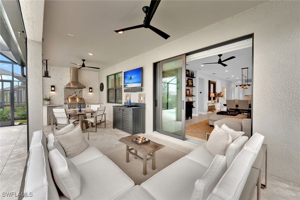 Kelly OlinEnjoy southern lake views, a custom saltwater pool & spa, whole-home natural gas Generac generator, hurricane-impact windows and doors, and electric Storm Smart hurricane shades this beautifully upgraded residence offers worry-free, resort-style living in one of Southwest Florida s most sought-after communities. This Pulte-built Contour floor plan in Verdana Village features 2 bedrooms + den, 2 full bathrooms, and 1,405 square feet of thoughtfully designed living space, combining modern luxury with low-maintenance convenience. Inside, you ll find tile flooring throughout the main living areas and den, recessed lighting with dimmers, premium 5-inch baseboards, plantation shutters, and custom valances throughout. The kitchen is well-appointed with Whirlpool stainless-steel appliances, a brand-new KitchenAid dishwasher, externally vented range hood, tile backsplash, soft-close cabinetry with pull-out shelving, custom pantry shelving, natural gas appliances, water softener, and reverse osmosis system. The primary suite offers a tray ceiling, plush carpet, peaceful lanai and lake views, and a spa-like en-suite bathroom with a framed glass shower with bench, tile to the ceiling, rain shower head, dual vanities, and a custom walk-in closet. The guest bedroom and bathroom provide privacy and comfort with a framed glass shower, tile to the ceiling, and comfort-height vanity. A dedicated laundry room and two-car attached garage add everyday convenience. Step outside to your private retreat on the panoramic frameless screen-enclosed lanai, featuring a custom saltwater pool and spa with leathered marble pavers, premium Diamond Bright quartz-mixed plaster, oversized sun shelf, two bubblers, hidden drains and skimmer, and a gas heater. The fully equipped outdoor kitchen includes granite countertops and backsplash, grill with rotisserie and griddle, vented hood, beverage cooler, and ample dining and lounge space perfect for relaxing or entertaining year-round. Located in Verdana Village, residents enjoy access to indoor and outdoor pickleball, tennis, basketball, three resort-style pools, dog park, state-of-the-art fitness center, yoga studio, and multiple on-site dining options. Just steps away are The Shoppes at Verdana Village, offering Publix, restaurants, salons, and everyday conveniences. Ideally situated 15 minutes to Southwest Florida International Airport, 10 minutes to Miromar Outlets and Gulf Coast Town Center, 5 minutes to Old Corkscrew Golf Course, and approximately 45 minutes to Bonita Beach and Fort Myers Beach. This is a rare opportunity to enjoy a luxury, low-maintenance, resort-style lifestyle in a nearly new home move in and start enjoying the best of Southwest Florida living. Also available for sale.