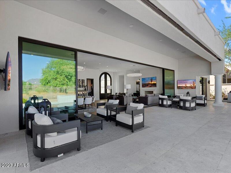 Darren TackettTHIS IS A FURNISHED RENTAL THAT IS AVAILABLE SEASONALLY (1 Month Min), (Jan - Mar $24,995) (Apr, Oct - Dec $14,995) (May - Sept $9,995). Welcome to this extraordinary, completely remodeled contemporary home that sits on the best view lot in one of the most desirable gated neighborhoods in North Scottsdale, Grayhawk. This Modern Mediterranean home is truly a one-of-a-kind; combining style with all new amenities and amazing golf course and mountain views. Today's sought after style is achieved with an open floorplan featuring a stunning great room with 40 feet of 10' high retractable glass pocket doors creating indoor and outdoor living at its finest. The amazing great room features massive limestone fireplace w/flat screen above, Restoration Hardware furnishings and lighting, a large dining room table with seating for 12. Gourmet kitchen with top of the line SS appliances(gas dual oven and range, separate wine and beverage coolers) quartzite counters, marble backsplash, coffee station, custom floor to ceiling cabinetry and oversized kitchen island with seating for 6The outdoor living space has multiple sitting areas with TV's, sparkling pebble tec pool with waterfall and fire feature and heated spa. Built-in BBQ/Bar/Refrigerator and tons of hard deck to enjoy the spectacular golf and Mountain Views.The house features top of the line fixtures and wide plank oak flooring throughout combined with thoughtful tile in all bathrooms. Ease of living with a main level split master bedroom and two additional ensuite bedrooms with dedicated office space. Guests will also love the detached casita(en suite bathroom) with separate entrance.There is a 2.5-car garage( with 4 additional parking spaces) with extra space for bicycles and storage in cabinets. You will realize state-of-the art living with ring exterior cameras, wired sound throughout house combined with large flatscreen TV'sOwner pays(with caps) gas and electricity, Water/sewer/trash, Cox high-speed internet, landscaping, pool maintenance, pest control and weekly housekeeping.This home is special and will satisfy your pickiest clients whether its for an executive relocation, temporary stay while building a home, or as a seasonal vacation home