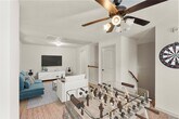 Beautiful move in ready 1 and a half story home with three bedrooms and three full bathrooms in Olympia Estates. The home has an ample game room upstairs with a spacious walk-in-closet and a full bathroom. This area could be used as a fourth bedroom,guest suite or super spacious home office without sacrificing downstairs space and privacy. The downstairs area comprises three bedrooms,open space kitchen and breakfast area with granite countertops and expresso cabinets,a WALK IN PANTRY,laundry room with access to the two car garage and ample living space with high ceilings up to the top floor. Enjoy the outdoors in an ample covered patio and fenced yard. Olympia Estates is centrally located very close to the Fort Bend Tollway,Highway 6,near schools,hospitals,dining and entertaining and a short 20 minute drive to the Medical Center via 288! MLS# 43477275