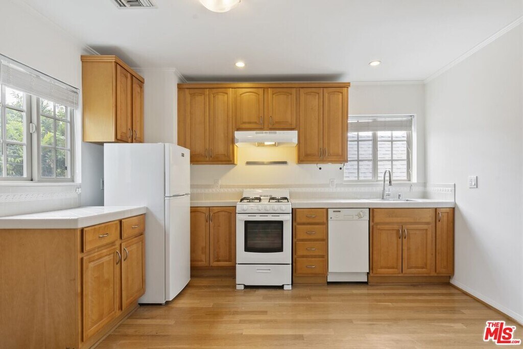 Fabulous private upper level spacious 1 Bedroom/1 Bath unit with no common walls. Private side entrance to this back house located upstairs. Filled with natural light, the spacious open updated floor plan has a kitchen area with gas range/oven, dishwasher and tiled countertops, hardwood flooring and central ac/heat. Separate 1 bedroom with closet and hardwood flooring. Updated full bathroom with tile finishes. Located in prime Westwood residential neighborhood in ideal location, close to Westwood Blvd. retail and restaurants, Century City Shopping Mall and UCLA. Utilities included. MLS# 25593215
