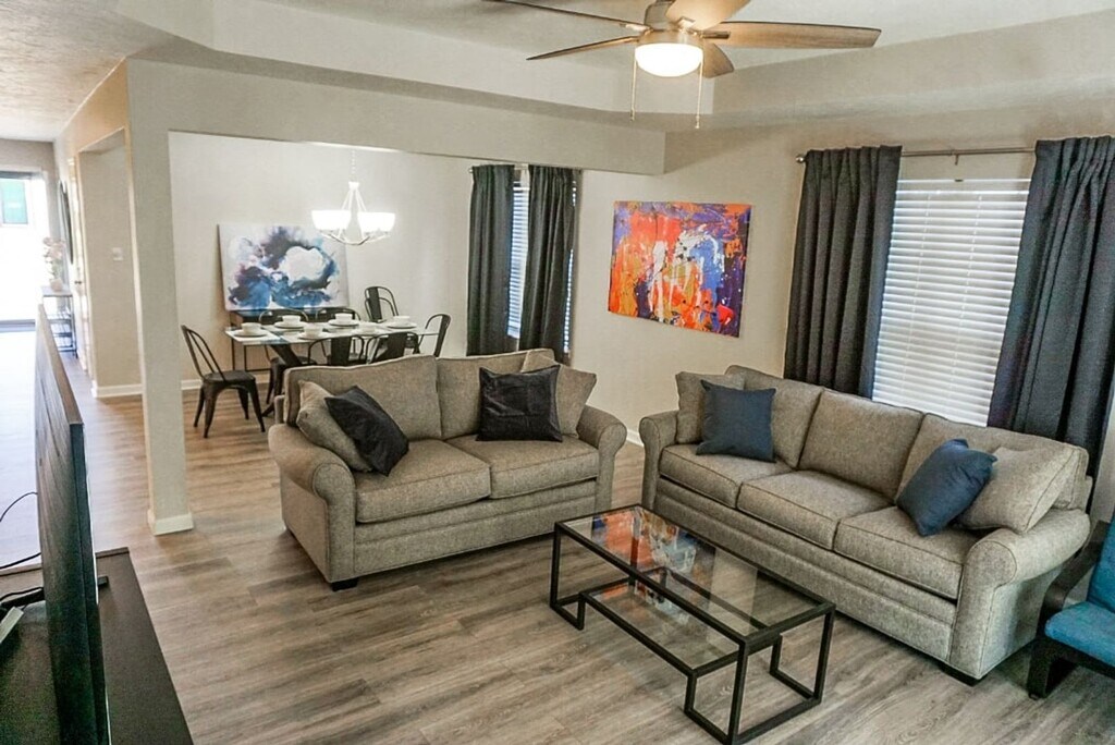 Fully FURNISHED CORPORATE 3-Bedroom Rental. Tons of Features. Perfect for any stay! Located in nice, well maintained neighborhood with ideal location for work commutes & entertainment. Recently renovated cozy single-family Home with Garage. This home has 3 bedrooms with 2 queen beds, and 1 full size bed. There is also a sofa bed, which pulls out with a queen sized mattress. This is a one floor home. There are two full bathrooms. There is washer/dryer available, accessible through kitchen. A total of 4 TV's in the home, there is a 55 inch TV in living room and all three bedrooms each have a 40 inch tv. These are all smart TV's and also have roku sticks installed. Small backyard, great zen space. No pets. 1-month minimum. Walkable to the Augusta National or Masters Tournament. Located 1/4 mile from The Augusta National Golf course and close to all the best local spots. Conveniently located within walking distance to multiple restaurants, grocery stores, and bars. Other locations nearby include Kroger, Publix or Costco, TopGolf, Vallarta's, Metro Diner and many more! Call Debbie Franco to view.