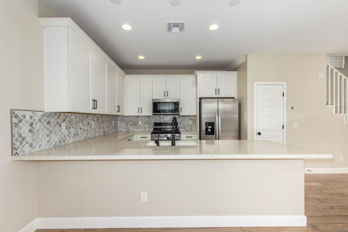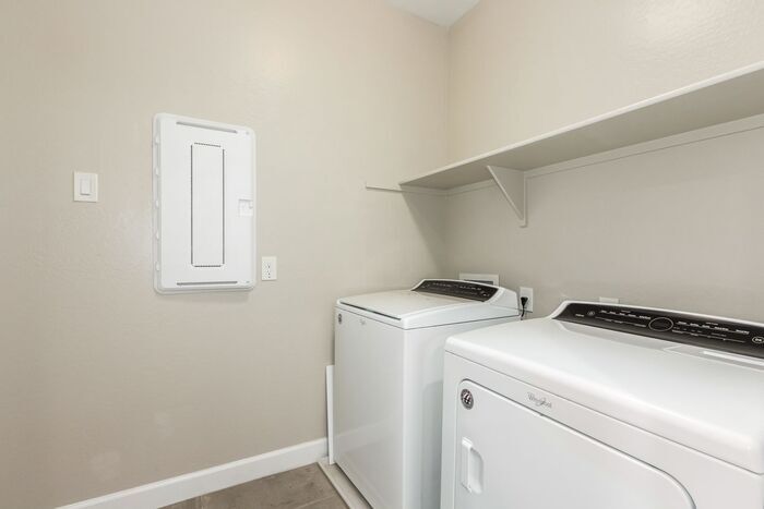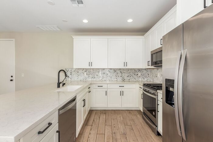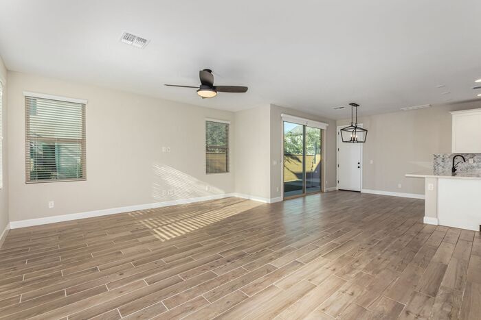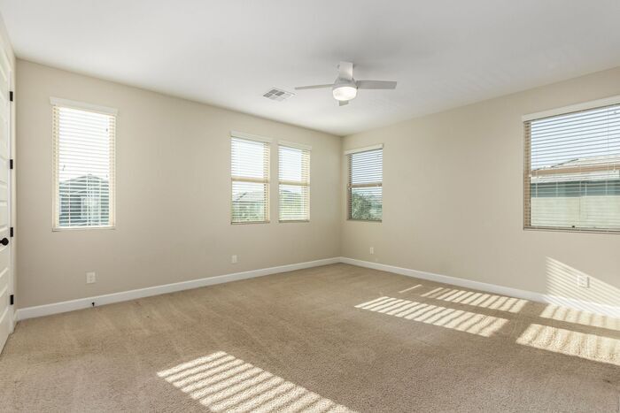 Rare end lot! Tiled walk-in shower at master bath. Stainless steel, whirlpool appliances. Full overlay white shaker style cabinets w upgraded crown molding. Quartz kitchen counters. Arabesque marble look kitchen backspalsh. 8' interior doors w upgraded hardware. Upgraded light fixtures t/o. 12 x 24 tile at baths & laundry. 6 x 36 wood look tile entire 1st floor. Upgraded carpet/pad. 5 ¼'' baseboards. 2-tone interior paint. Upgraded plumbing fixtures. Dual walk-in closet at master.Gas stub for future BBQ or fire pit. Pavers at front porch, walkway & driveway. Soft H2O pre-plum. Union Park features tree-lined streets, pedestrian-friendly sidewalks and a 5,500 sf recreation center with resort style pool and kiddie pool, shaded ramadas, parks, gathering areas, pickelball courts and basketball. Refundable Security Deposit: $2595 Non-refundable Cleaning Deposit: $300 Non-refundable Pet Deposit: $400 Admin Fee: $299 Monthly Admin Fee: 3% Energy & Preventative Maintenance Fee (Mandatory): $25 Monthly *All Tenants are required to purchase a Renter's Insurance policy with liability coverage no less than $100,000, listing Red Brick Realty as an additional interest. Please send us a copy of your policy prior to move in* This property allows self guided viewing without an appointment. Contact for details.