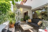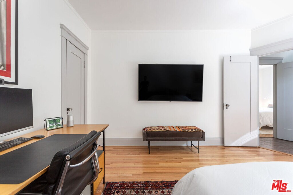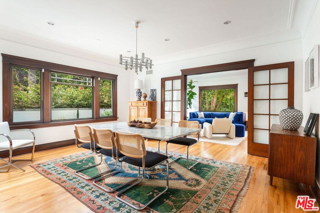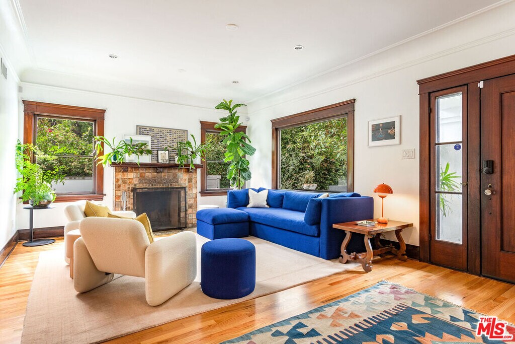 Located in the coveted neighborhood of the historic Hollywood Grove, this classy apartment is situated on the MAIN FLOOR of a privately gate DUPLEX and pairs old Hollywood elegance with functional modernism and style. Aside from its generous layout and original architectural details - such as a Batchelder wood burning fireplace, classic hardwood floors, and French doors and windows - you will find a spacious gourmet kitchen with oversized pantry and breakfast area, a light flooded dining room, a beautiful living room facing the private yard, and an office/den with a cozy alcove. The apartment features 3 bedrooms and plenty of closet space in all bedrooms. There is also the lush and peaceful private patio by the main entrance for that much needed wind-down time after work, a thriving front garden grown into wild perfection, and a shared outdoor dining area with citrus trees and a fountain by the kitchen entrance on the other side of the building - ready for your fresco get-togethers and small dinner parties. Breathtaking hiking trails up the road and the popular Franklin village with coffee shops, restaurants, bars and a market just a short stroll away - all situated in the secluded Hollywood foothills yet within a short driving distance to Disney, Universal, Paramount, Netflix, and all that LA's best has to offer. Weekly landscaping service is included, and the tenant pays utilities. Please DO NOT DISTURB tenant. Lease includes limited-time promotion: 1 month free on 13-month term. Net effective rent is $7615,- /month for 13 month term. Rent reverts to $8250,- /month after promo period. Please note it will be rented UNFURNISHED! Thank you! MLS# 25590217