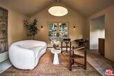 Set behind the private gates of Laughlin Park, one of Los Feliz's most coveted enclaves, this elegantly reimagined residence offers a timeless blend of artful craftsmanship and thoughtful design. Spanning over 4,600 square feet across a main house and guest house, the property has a masterful layout where each space flows effortlessly into the next, marked by warmth, intention, and ease. Inside, richly layered interiors reveal natural stone flooring, accordion-style doors, and curated finishes that speak to understated luxury. Oversized windows bathe the home in natural light, illuminating expansive yet inviting living spaces. The chef's kitchen features custom cabinetry, marble countertops, and top-tier appliances, offering both style and function. Upstairs, the formal living room, anchored by a stately fireplace and dramatic beamed ceiling, sets the tone for elegant entertaining. The primary suite serves as a private retreat serene, spacious, and refined with a large walk-in closet and dressing area, balancing the home's original character with modern comfort. Step outside to a private sanctuary. High hedges and layered landscaping create a tranquil backdrop for the glistening pool, with a seamless connection to the exceptional guest house. Just moments from Griffith Park and the vibrant eateries and shops of Los Feliz, this architectural gem offers a rare combination of sophistication, privacy, and authenticity in one of L.A.'s most desirable neighborhoods. MLS# 25605525