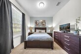 This fully furnished 5-bedroom, 4.5-bathroom townhouse is located in the highly desirable Windsor at Westside community and offers the perfect combination of modern style, comfort, and resort-style living. Thoughtfully designed for everyday convenience, the home features a bright open-concept living and dining area, a modern kitchen with granite countertops, stainless steel appliances, and a spacious center island ideal for family gatherings or entertaining. Upstairs, a spacious loft adds an extra area for relaxation or entertainment, and the thoughtfully designed bedrooms-including several with private baths-provide comfort and versatility for family, guests, or a dedicated workspace. The overall layout is designed to support practical, comfortable long-term living. The home comes complete with a screened-in private pool, allowing you to enjoy Florida's outdoor lifestyle year-round, along with the convenience of a one-car garage with alley access and central air conditioning. Residents of Windsor at Westside enjoy access to exceptional amenities, including a resort-style pool with lazy river and water slide, a fully equipped fitness center, spacious clubhouse, arcade, sports courts, playground, and an on-site bar and grill-all within a secure, 24-hour gated community. HOA fees cover exterior maintenance, ensuring a low-maintenance lifestyle. Ideally located near schools, shopping, dining, and major highways, this beautifully maintained and move-in-ready townhouse is an outstanding long-term rental opportunity for anyone seeking comfort, convenience, and a vibrant resort-style community.