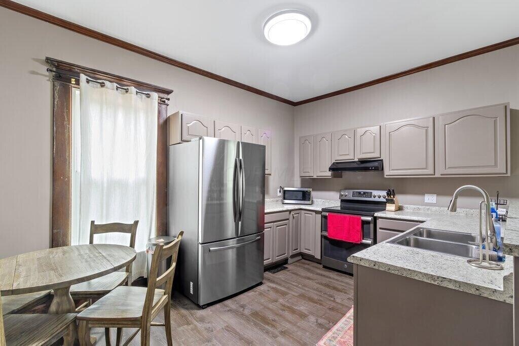 This beautiful 5-bedroom,2-bath home blends modern updates with historic charm! Featuring an updated kitchen with bar seating,updated full bath,tall ceilings throughout,and a delightful lemonade front porch perfect for relaxing. A detached 2-car garage offers convenient parking and extra storage. Located on the bus line for easy access to The Ohio State University and nearby amenities,including shopping,dining,and parks. Ideal for students or professionals seeking comfort and convenience in the North Campus area. This property is available for fall of the 2026-27 school year.