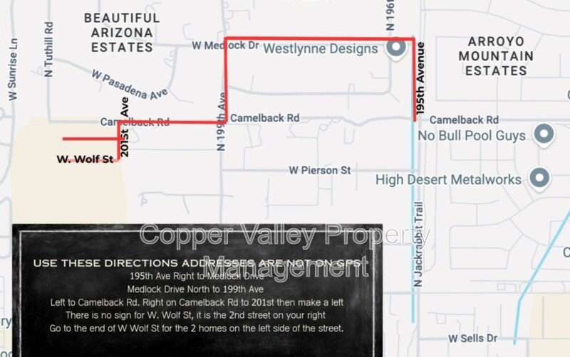 $2,700 / 4 br / 2.0 ba / 1887 sqft 4BR Home in Litchfield Park Brand New! Single Level 4-Bedroom Home with RV Garage & No HOA 20273 W Wolf Street Litchfield Park, AZ 85340 Discover your perfect desert retreat. This brand-new single-level home features 4 bedrooms, 2 bathrooms, and sits on a full 1-acre lot with beautiful mountain views. Getting There (Important – GPS DOES NOT Recognize Address) Please follow these directions carefully: Take 195th Ave right to Medlock Drive Continue on Medlock Drive to 199th Ave Turn left to Camelback Road Right on Camelback Rd to 201st Ave, then turn left at the flags onto the dirt road There is no sign for W Wolf Street; it is the 2nd street on the right Please drive slowly as there are both dirt and gravel roads in the area. ***Property Highlights*** 4 spacious bedrooms and 2 modern bathrooms 2-car garage plus full-size RV garage Open-concept floor plan with high ceilings and split-bedroom layout Chef's kitchen with white shaker cabinets, granite countertops, stainless steel appliances, oversized island, and walk-in pantry Primary suite with dual vanities, walk-in shower, and large walk-in closet Wood-look tile flooring throughout Ceiling fans and window coverings in every room Laundry room with washer and dryer hookups WATER INCLUDED! Fenced backyard, pets welcome with owner approval Enjoy peace, privacy, and room to roam. Perfect for those needing space for RVs, trailers, and outdoor living in a quiet, scenic setting. Lease Details: **WATER INCLUDED WITH RENT** Application Fee: $50 Monthly Admin Fee: $25 Security Deposit: $2,800 Non-Refundable Cleaning Fee: $300 1–2 year lease options available READY TO SEE IT TODAY? Schedule your private, self showing now. Photos with furnishings are virtually staged