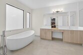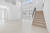 Experience true tranquility in this beautifully designed Polynesia model, perfectly positioned deep within the Lotus Palm community--far from any street or freeway noise. This 5-bed, 7-bath residence offers over 4,600 sq ft of refined living space with soaring ceilings and expansive windows that fill the home with natural light. The gourmet kitchen features a large quartz island, modern cabinetry, sleek counters, and upgraded stainless-steel appliances, including a newer refrigerator. The primary suite includes dual bathrooms and an oversized ''her'' closet. Step outside to a backyard that offers the best of both worlds--a half-private, half-lake view that feels peaceful and open. Enjoy access to the brand-new Lotus Palm clubhouse with amazing state of the art amenities.