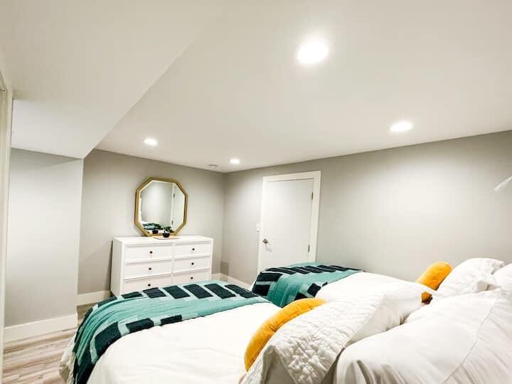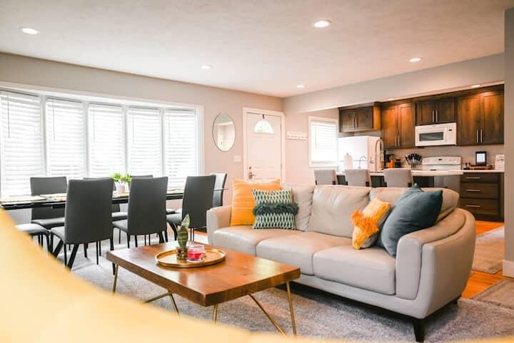 Welcome to our remodeled luxury home, where your comfort is our top priority! Get your heart pumping with a workout on the Peloton Bike, grill up a delicious dinner, then unwind in the hot tub. We love hearing what guests have to say: "10/10 One of the best AirBnBs I’ve been in." The fully stocked kitchen and cozy living room with a large screen TV make this a perfect place to kick your feet up! Book your stay today and get ready for a memorable experience, we look forward to hosting you! Renovated with you in mind, The Peloton is perfect for any length of stay! From the comfortable sleeping arrangements in each bedroom (complete with highly rated mattresses, multiple pillow options, and blackout blinds) to the open floor plan, you’ll find yourself enjoying each area of the home. Hangout with your favorite people while whipping up a delicious meal in this fully equipped kitchen, complete with seasonings, silverware, pots, pans, and plates. You’ll be blown away by the amenities! Need to work remotely? Enjoy our dedicated workspace downstairs and away from the commotion. Because we know you’ll be busy making memories, we made sure to include things like fast internet, a baby gate for the stairs, portable crib, a blow dryer, towels, soap, and extra blankets to make your stay as smooth as possible! At Peloton House, you’re only: 5 mins to Gateway Mall 7 mins to Chick-fil-A 48th and O 8 mins to Memorial Stadium 12 mins to downtown Lincoln 13 mins to Holmes Lake With so many convenient features, this location is sure to entice you to extend your stay and continue creating unforgettable memories! Here’s a summary of what you can expect on every level: FIRST LEVEL Fully Stocked Kitchen: Breakfast bar with seating for three Reverse osmosis water filtration Spices and seasonings Electric griddle Coffee maker Hot water kettle Full-size fridge and freezer Oven with four-burner electric stove Dishwasher Microwave Upstairs Bedrooms: King size bed Queen size bed Full-length mirror Ceiling fan Main Bathroom: Bathtub with shower Hair dryer Vanity and mirror Family and Dining Room: Comfortable seating 65” flat screen TV Throw blankets LOWER LEVEL Third Bedroom: Dedicated Workspace Queen size bed Large desk Fan Fourth Bedroom: Two twin beds Desk Fan Private Bathroom: Walk-in shower Great water pressure Laundry Room: Washer and dryer units Workout Area: Peloton Bike Yoga mat Foam roller Light weights Exercise ball Backyard Patio Seven-person hot tub Grill Patio table and chairs P.S. Looking to host a larger gathering? Book the neighboring property, too! Send us a message for more details! With a quiet neighborhood, easy access to downtown, and great restaurants–this location is unbeatable! Book your stay today! You’ll also have access to the backyard patio with a hot tub, grill (we’ll supply the propane), and patio seating. The driveway fits up to two cars, with additional street parking in front of the home. Other Things to Note In an effort to maintain a secure premise, this home is equipped with exterior cameras. The cameras are ONLY on the exterior to ensure your safety.