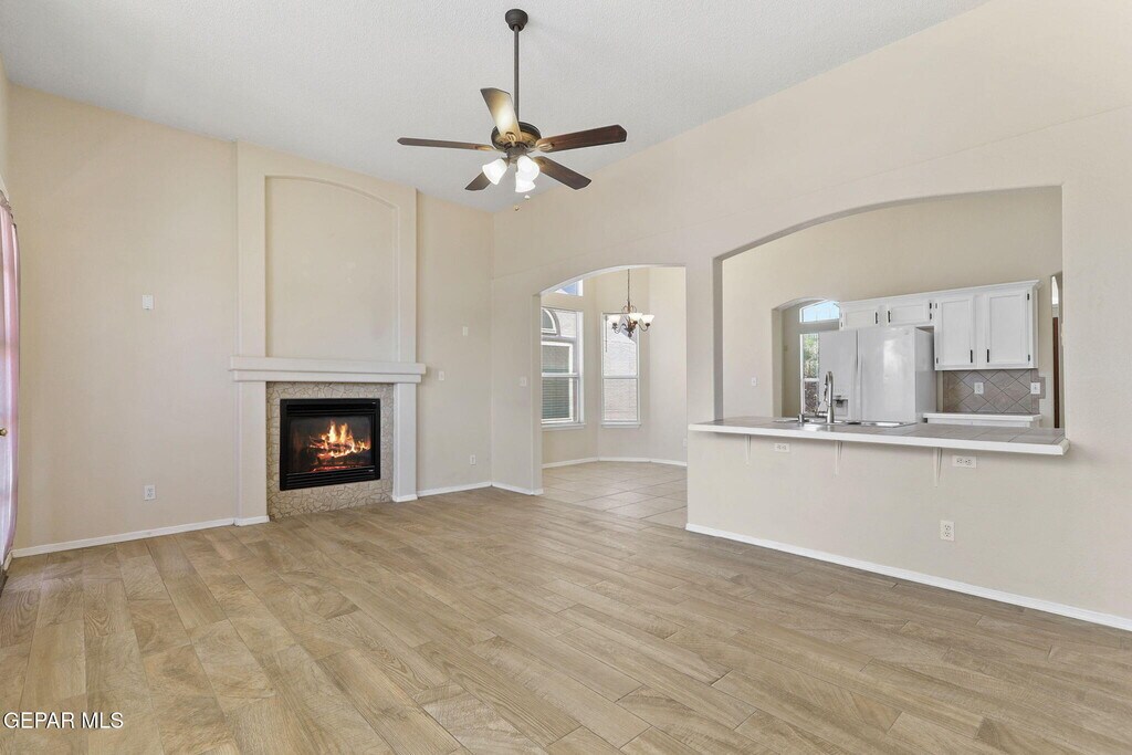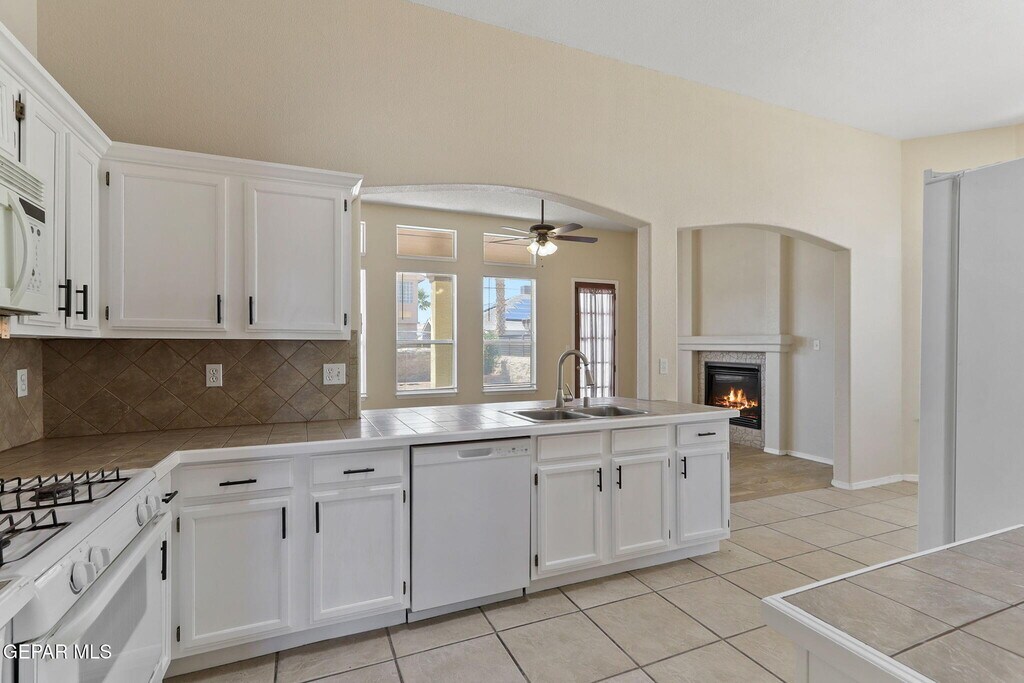 Cozy one-level home in Far-east El Paso. Two living areas,one with a fireplace. Cute,white & bright kitchen in the middle with plenty of cabinetry. Refrigerated air,all tile,no carpet. Landscaped front and large backyard with a small covered patio. Close to shopping,schools,and Ft. Bliss. Pet friendly (limit 2),breed restrictions apply. **Listing may be subject to errors,omissions or changes without notice. All are instructed to verify all information independently prior to taking any action.**