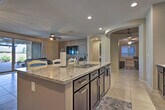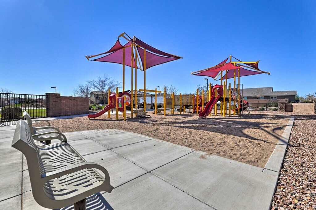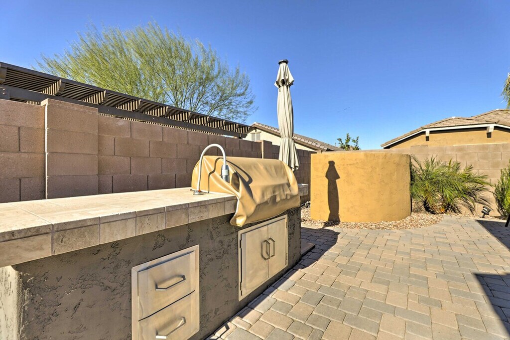 Feel at home in this updated Queen Creek vacation rental, boasting 3 bedrooms and 2 bathrooms. This home is perfect for travelers looking for the utmost comfort and convenience during their stay. This fully equipped Queen Creek oasis features a gourmet kitchen with cooking basics, stainless steel appliances, granite countertops, dishware and flatware, a Crock-Pot, blender, and drip coffee maker. Enjoy indoor entertainment with 4 smart TVs with cable, a 6-person dining table, ceiling fans, and an open floor plan. Additional amenities include a washer and dryer, towels and linens, complimentary toiletries, a hair dryer, trash bags and paper towels, and beach towels. There is an optional pool heat fee that can be applied to the entire stay. Take advantage of the nearby hikes, golf courses, and botanical gardens. The outdoor living space includes a furnished patio with an outdoor dining area and bistro lights, an outdoor kitchen with a grill, and a fire pit with seating. No smoking, pets, events, parties, or large gatherings are allowed. An exterior security camera is located above the front door facing outward towards the street. Because the pool is not fenced, the property might not be suitable for young children; adult supervision is recommended. The community pool is currently undergoing maintenance and is unavailable to guests at this time. Additional fees and taxes may apply, and a photo ID may be required upon check-in. Includes an office with a laptop-friendly workspace and free Wi-Fi. [SI]
