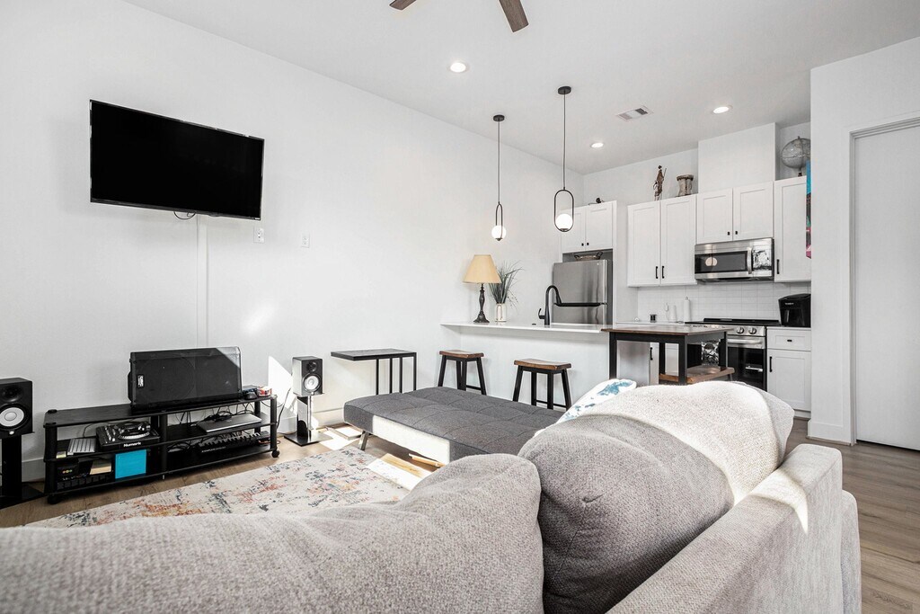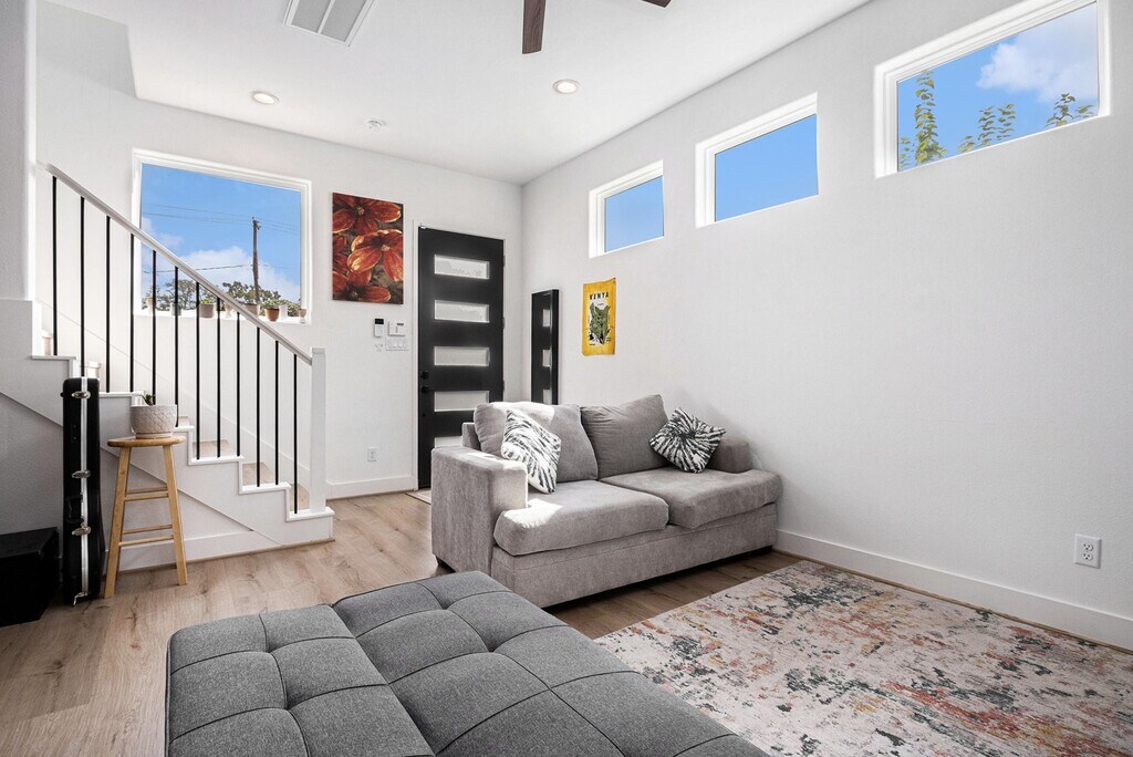 Modern living in the heart of Houston! This beautifully designed home features an open-concept layout with a kitchen/dining combo,soft-closing cabinets and drawers,walk-in pantry,and kitchen open to the family room. The primary bedroom offers an en-suite bath with double sinks,tub/shower combo,and walk-in closet. Additional highlights include high ceilings,ceiling fans,central laundry,and prewiring for an alarm system. Enjoy assigned parking,private driveway,and partial fencing for added privacy. Public water/sewer,electric appliances,and washer/dryer connections included. Minutes from Downtown Houston! MLS# 19888017