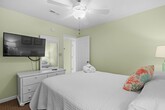 Ground floor! Immerse yourself in this stylish two bedroom condo just 1.5 miles from the stunning Surfside Beaches. Located in Grand Palms at Deerfield and positioned so you can enjoy easy access to the beach and local shopping. ***Note Grand Palms timeshare amenities are not available to our guests*** Relax and enjoy family time in this spacious and comfortable ground floor condo located just 1.5 miles to the closest beach access in Surfside Beach. Experience the laid back, family friendly atmosphere of Surfside Beach while taking advantage of all the nearby restaurants and beach activities! Enjoy the fully stocked eat-in kitchen and comfortable living room making it the perfect place to stay while experiencing all the South Strand has to offer. The primary bedroom features a king sized bed, 40" flat screen tv w/premium cable, en suite bathroom and walk-in closet. The second bedroom has two comfortable double beds with a separate shower room and vanity/toilet room so 2 family members can get ready at the same time.