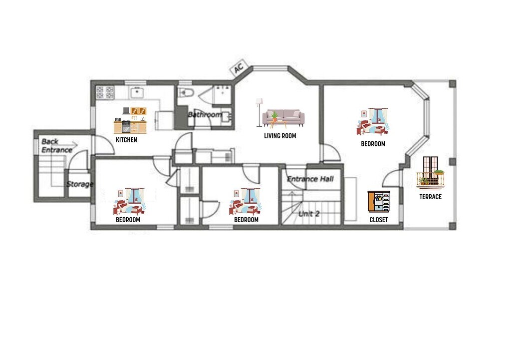 - 3BR, 1BA