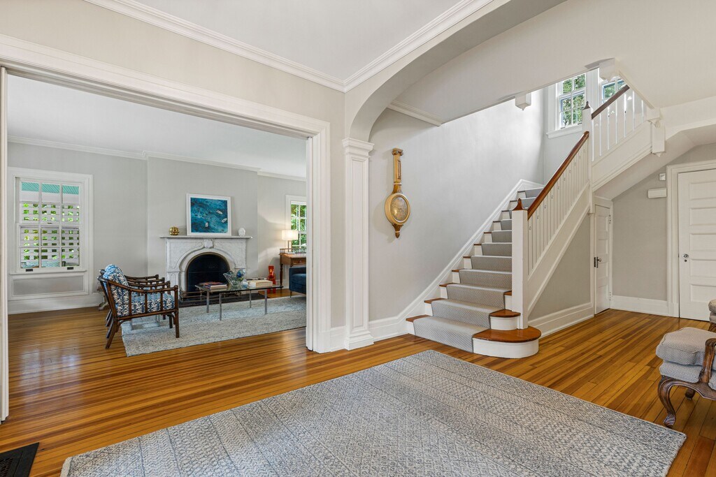 Step into timeless charm with this beautifully renovated 1910 colonial, set on 0.93 acres of level, park-like grounds in the heart of Riverside. Ideally located near the train, schools, and local shops, this residence offers both convenience and tranquility. A gracious wrap around covered porch and a stone terrace invite outdoor living, while the lush, verdant yard provides a serene backdrop for entertaining and play. A welcoming entry foyer seamlessly connects formal living and dining spaces. The chef's kitchen features white cabinetry, a generous center island, Sub-Zero, Viking and Bosch appliances and a inviting eat-in area. The kitchen flows into a spacious family room with soaring ceilings, custom built-ins, and direct access to the terrace. Upstairs, 6 bedrooms/3 full baths, a cedar closet and a playroom. Move-in ready and brimming with character, this home embodies the lifestyle and charm that make Riverside so sought-after. Rental Terms: Annual: $19,000 Per Month