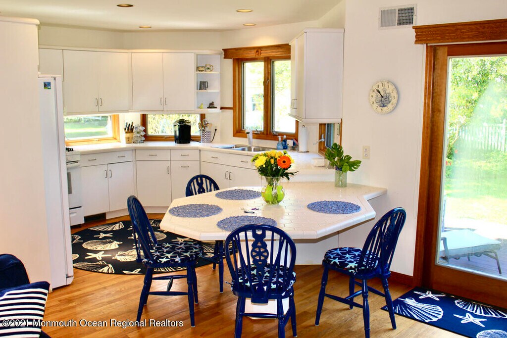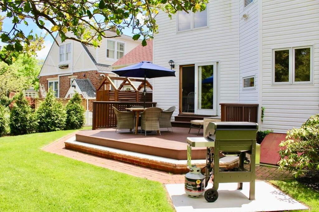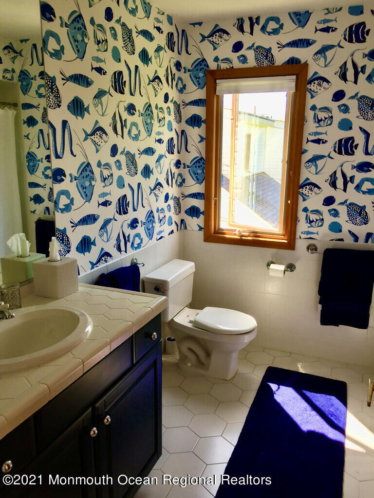 Summer '26 rental. Availability 6/1 to 6/13 and 8/10 to 9/8. A warm and inviting home,bright and airy,nestled in the quieter south end of Sea Girt,less than two blocks and a short walk to pristine Trenton and Neptune beaches. Ground floor main BR,Sun Room,LR w/cathedral ceiling & open Family Room/Kitchen with slider out to a private deck & yard for entertaining. 3 BRs and spacious Loft on 2nd with/ full bath. Working gas fireplaces in the main bedroom and family room. Weber grill,outdoor shower,Wifi,Sonos & 3 Streaming HDTVs,5 bikes,4 beach badges,6 beach chairs,umbrella included. NO PETS,no smoking,no group rentals. $7,000/wk. $325 cleaning fee. Utilities included. Security deposit & refs required.