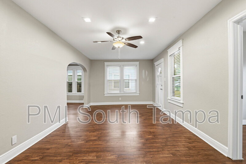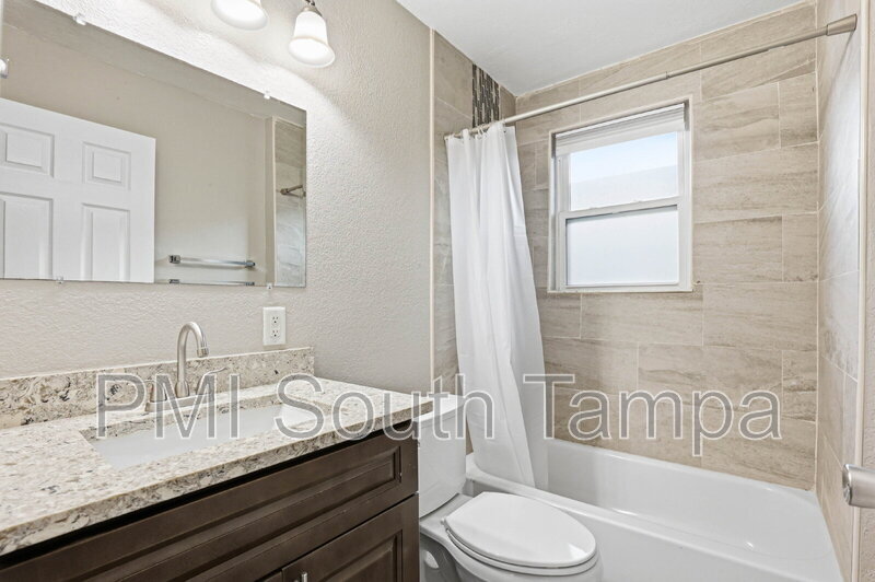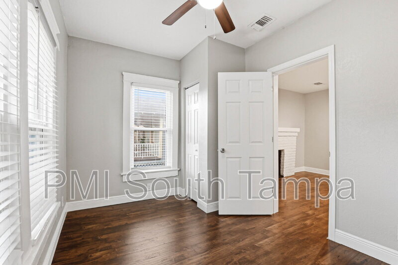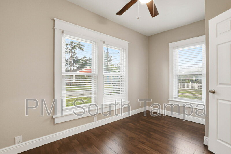 Welcome to 203 W Emma Street — a beautifully renovated Craftsman bungalow sitting in the heart of Tampa Heights, one of Tampa's most sought-after and rapidly growing neighborhoods. Offering 3 bedrooms, 2 fully updated bathrooms, and approximately 1,279 square feet of thoughtfully designed living space, this home blends timeless character with completely modern upgrades. Step through the striking red front door into a spacious, light-filled living room featuring premium luxury vinyl plank flooring, recessed lighting, a classic white-painted brick fireplace, and elegant arched doorways that nod to the home's original Craftsman roots. The open-concept flow leads seamlessly into the dining area and into a showstopping, fully renovated chef's kitchen — complete with bright white shaker cabinets floor-to-ceiling, gleaming granite countertops, full subway tile backsplash, stainless steel Samsung appliances (range, microwave, dishwasher, refrigerator), a generous kitchen island, and a deep single-basin sink with designer pull-down faucet. The kitchen opens back to the living and dining areas, making entertaining effortless. The spacious primary bedroom easily accommodates a king bed and features its own en-suite bathroom with a sleek glass-enclosed walk-in shower, designer mosaic tile accent wall, hexagon floor tile, granite vanity, and modern fixtures. A second full bathroom with a tub/shower combo, granite vanity, and tiled walls serves the remaining two bedrooms. Every bedroom features luxury vinyl plank flooring, ceiling fans, and large windows with ample natural light. A dedicated interior laundry area houses a full-size stacked GE front-load washer and dryer — included with the unit — along with the water heater and a back door leading to the rear of the property. Laundry is conveniently located within the unit for easy, everyday use and added comfort. Outside, enjoy a large concrete driveway and a lush, private fenced backyard shaded by mature trees — perfect for morning coffee or unwinding after work. The upstairs is owner-occupied, providing a well-maintained, quiet living environment. The downstairs space has a private entrance and no shared living areas, offering strong separation and independence. Minutes from Armature Works, the Riverwalk, I-275, Ybor City, downtown Tampa, and top dining and entertainment. This is Tampa Heights living at its best — old-soul charm, brand-new everything inside. Additional Terms Water, sewer, and trash are included in the rent. Electric is billed as a flat monthly fee and treated as additional rent for simplicity and predictability.